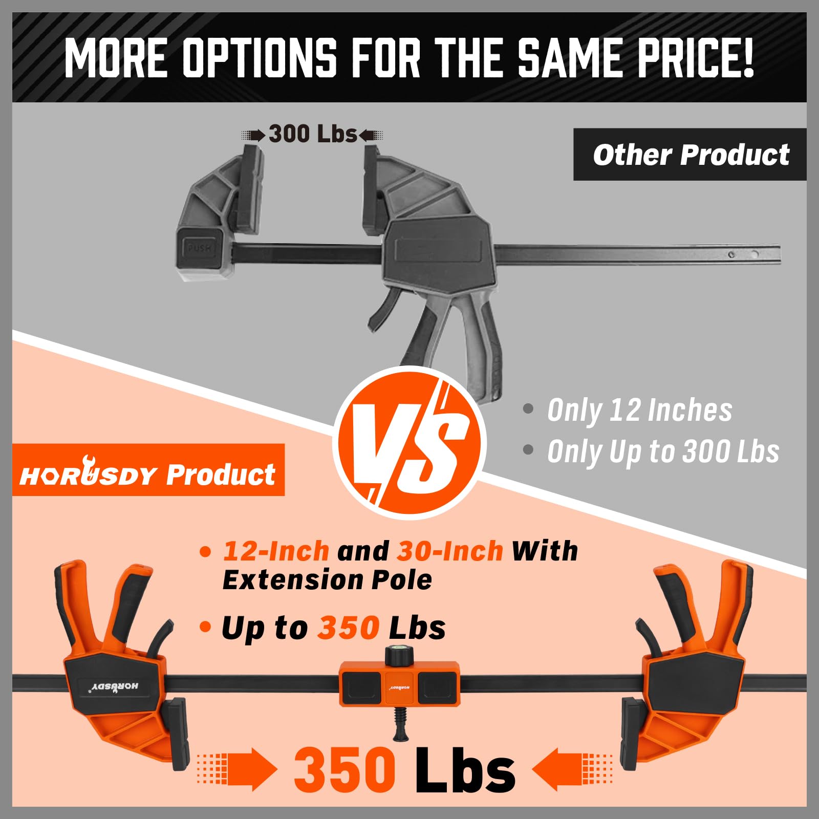 • PREMIUM QUALITY CONSTRUCTION - Made with high-quality steel rails and a reinforced nylon handle, HORUDSY bar clamps are built to last. The well-designed rail construction ensures a secure, non-slip grip under pressure, providing consistent performance for all your woodworking needs.