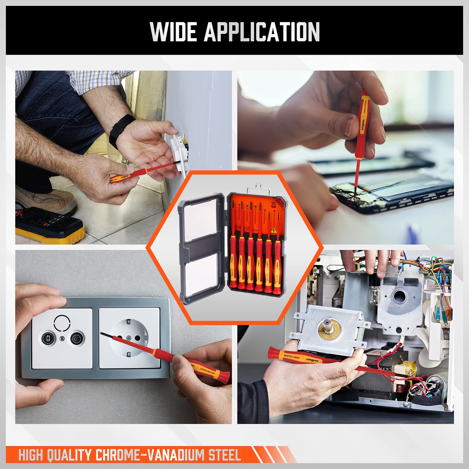 • [Package Includes]: The entire pack contains 6 pieces of precision Insulated screwdrivers. Slotted: 1.8mm, 2.0mm, 2.5mm, 3.0mm. Phillips: PH00, PH0.