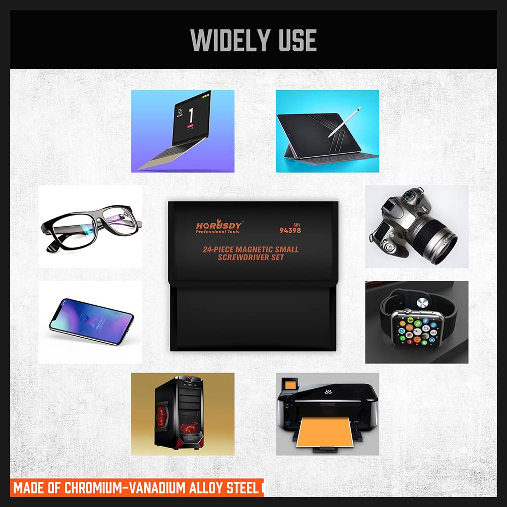 • [Premium Material] HORUSDY brings to you a small screwdriver which is made of pp+tpr materials and has a soft and non slippery handle making your work more easy and comfortable. Each precision screwdriver has a 360 degree rotation that allows you rotate the screws smoothly.