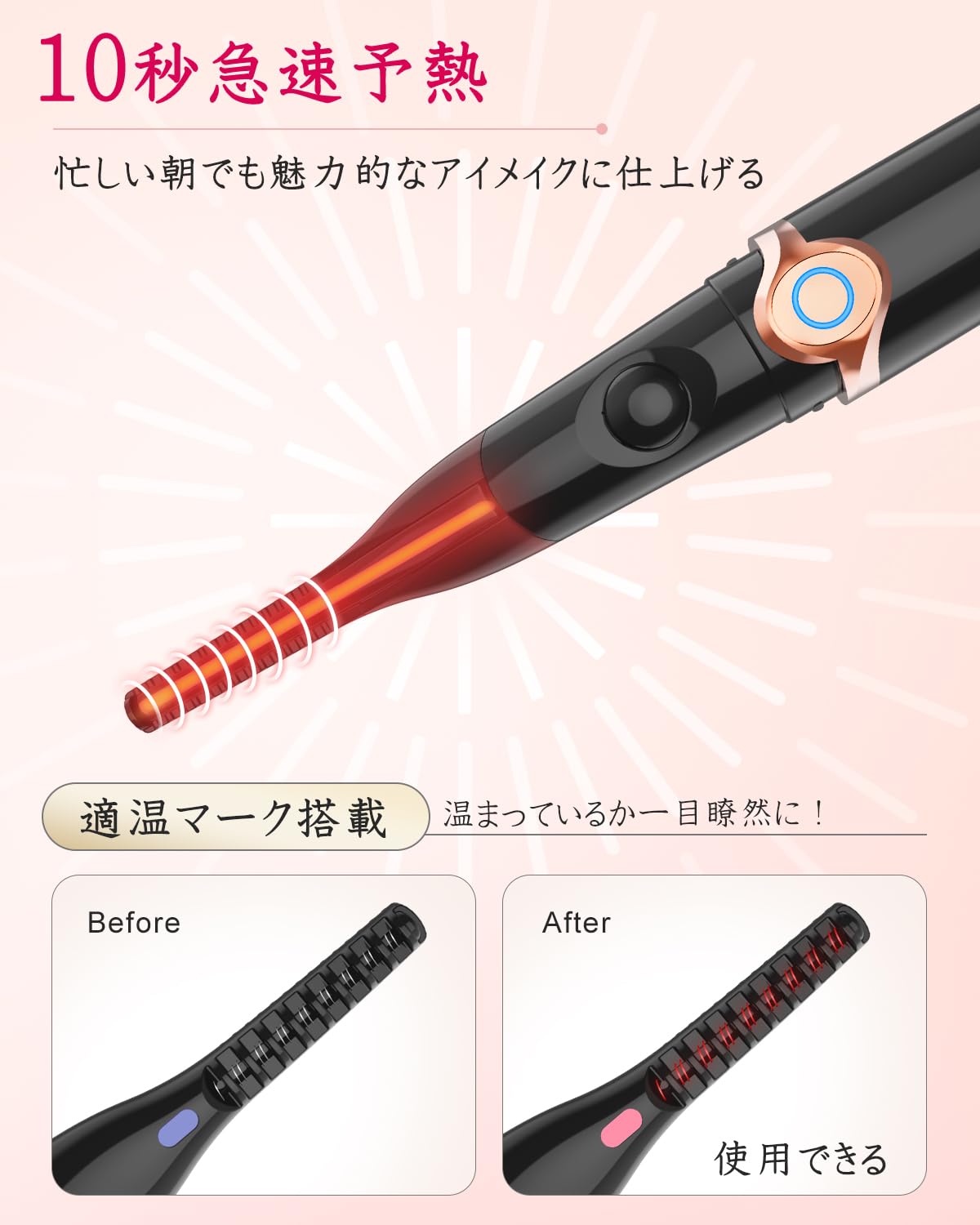 Advanced 2-way type. ULTIMATE CURL MADE WITH HEAT EFFECT: Unlike other eyelash buffers, this hot boiler is a 2-way type that can be used both false and self eyelashes. The clip allows you to create a natural finish with an arc comb at the roots to create a natural finish with a unified feel, while the roots are applied to the arc comb to create curls. In addition, it can be used with mascara for more curl up. There may be individual differences in the hair volume, hair quality, and length.
