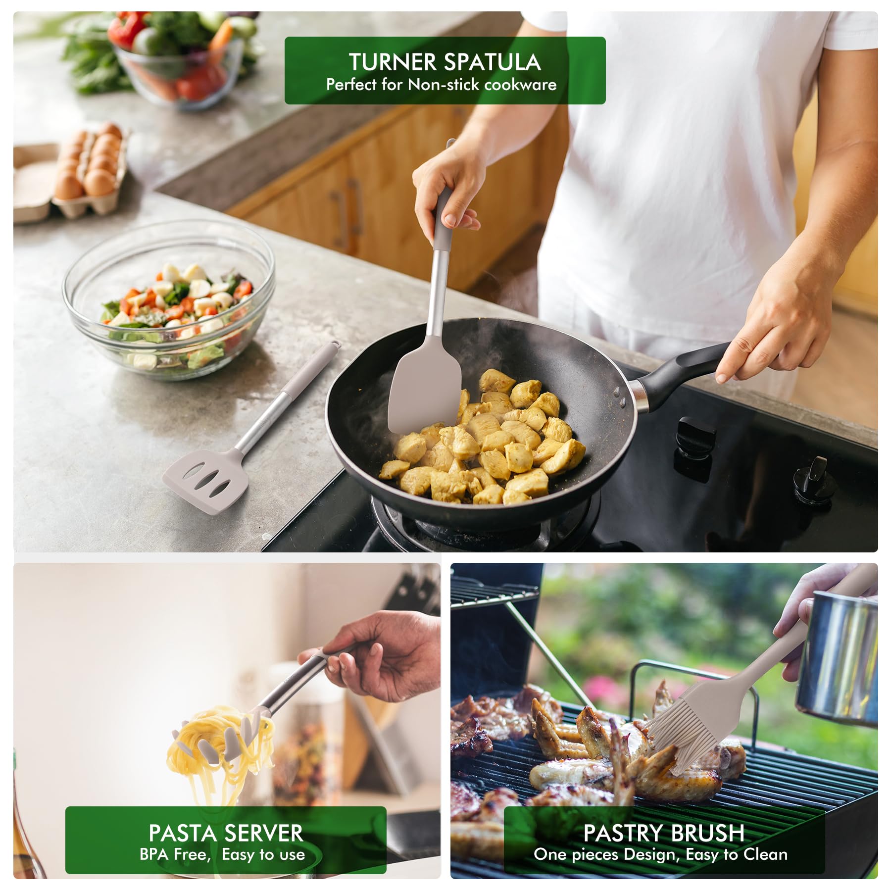 • 【HIGH QULAITY】: Made of food grade silicone with Non-rust Stainless Steel,BPA Free, sturdy. Unlike the nylon or wooden material easy broken, our utensils set will last long.