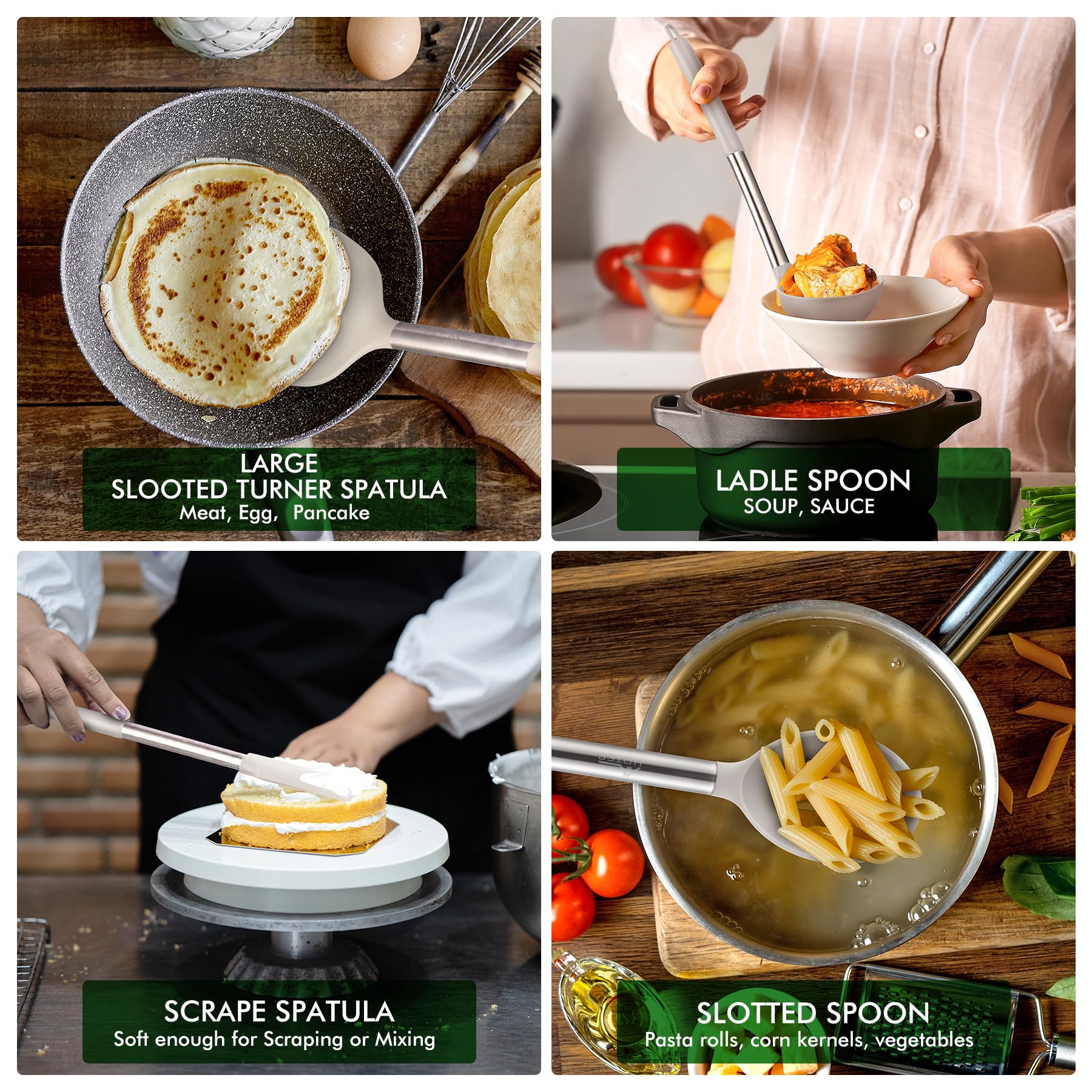 • 【EASY TO CLEAN】: Dishwasher safe, even though hand wash all is easy. Such a complete cooking utensils set is a great gift idea.