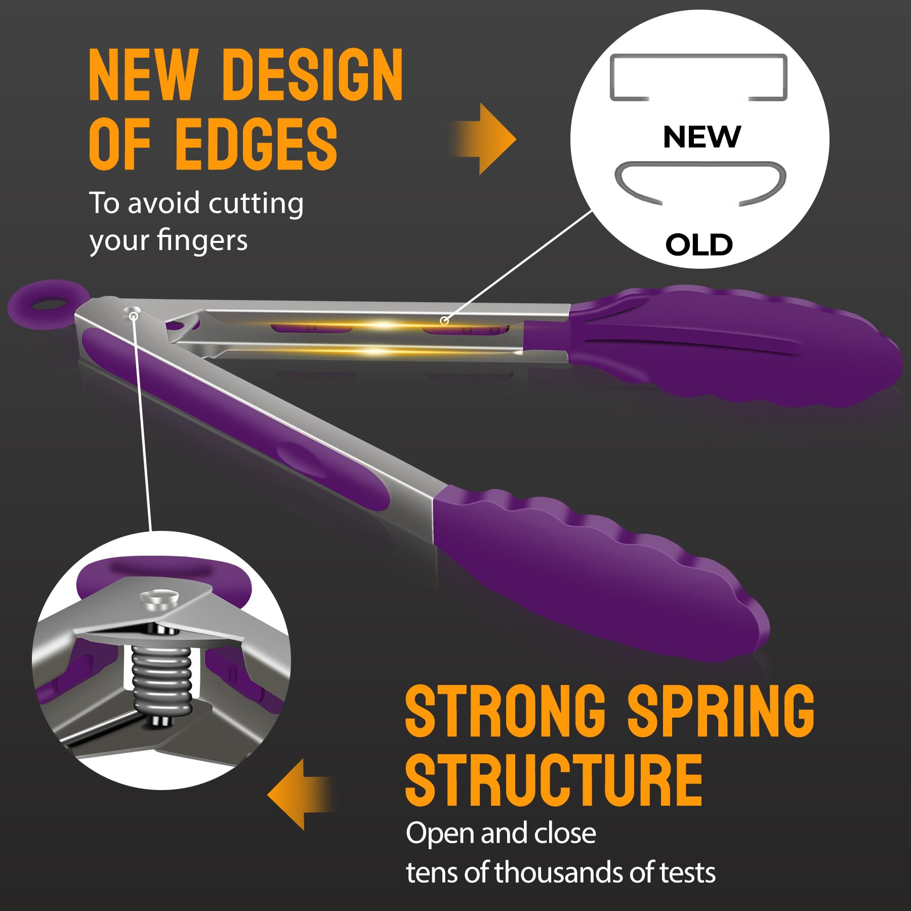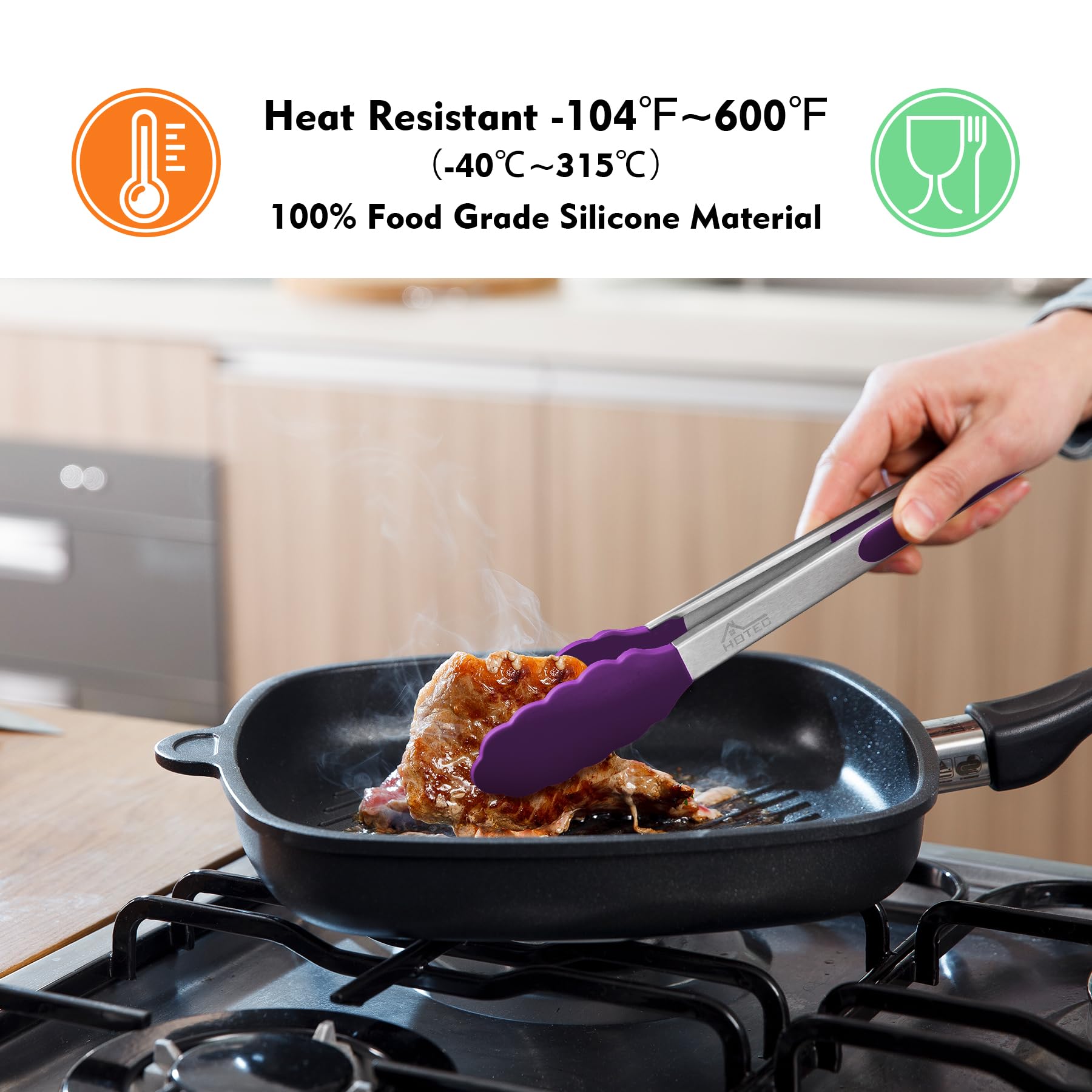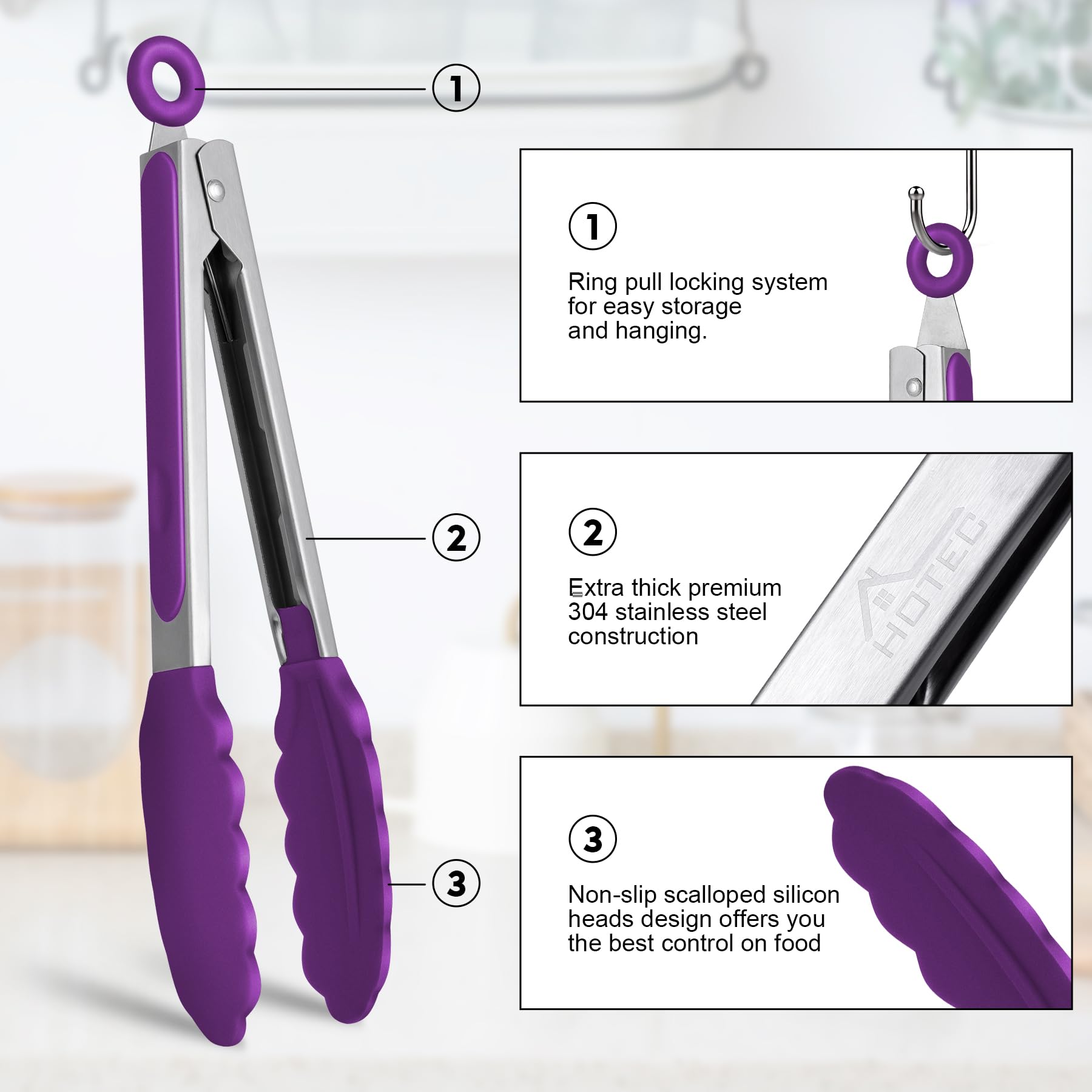 HOTEC Premium Stainless Steel Locking Kitchen Tongs with Silicon Tips, Set of 3-7", 9" and 12" (Purple)