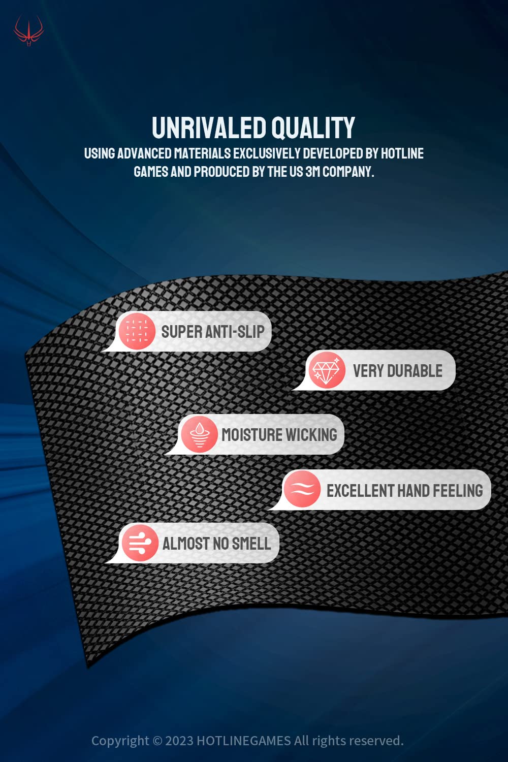 • EXCELLENT ANTI-SLIP & WATER ABSORPTION PERFORMANCE - Using advanced materials exclusively developed by HOTLINEGAMES and produced by the US 3M company, with a unique diamond texture to provide an excellent anti-slip performance! The special cut texture can not only absorb the sweat of your palms quickly, but also control the surface airflow to ensure your hands are cool and dry, and reducing the fatigue caused by long-term operation!