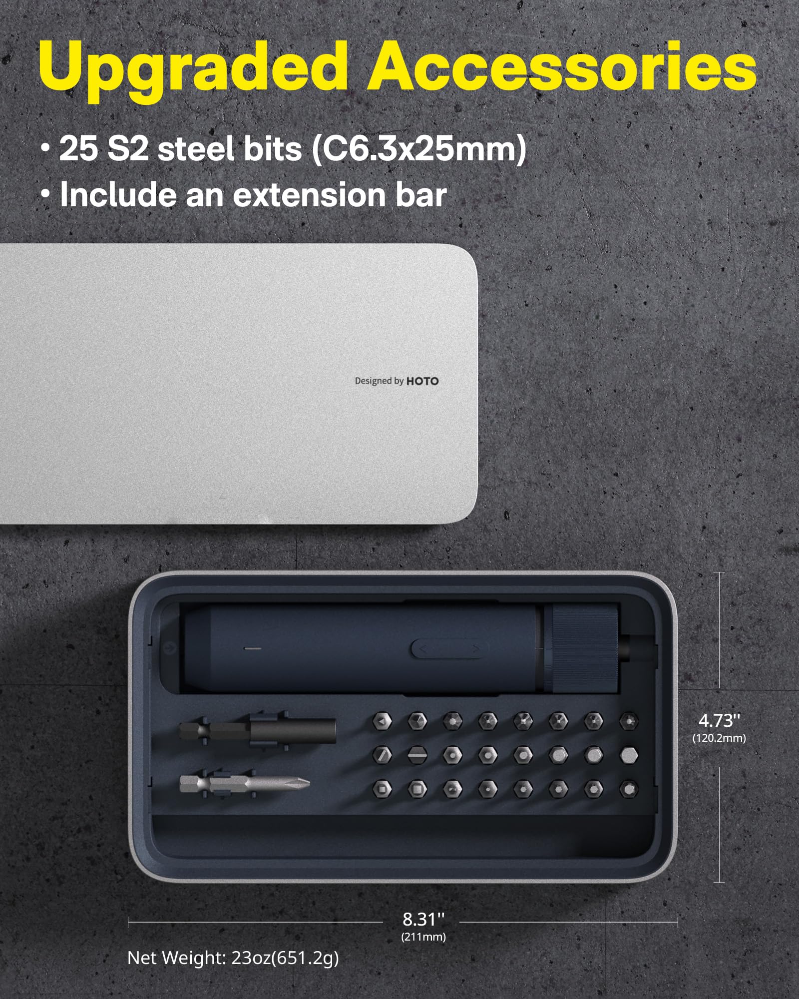 HOTO Electric Screwdriver Kit, 25-Piece Upgraded Bit Set, 3.6V Cordless Screwdriver Rechargeable, Magnetic Case Lid, 3 Torque Settings, 1500mAh Battery, LED Light for Furniture/Electrical Repairs
