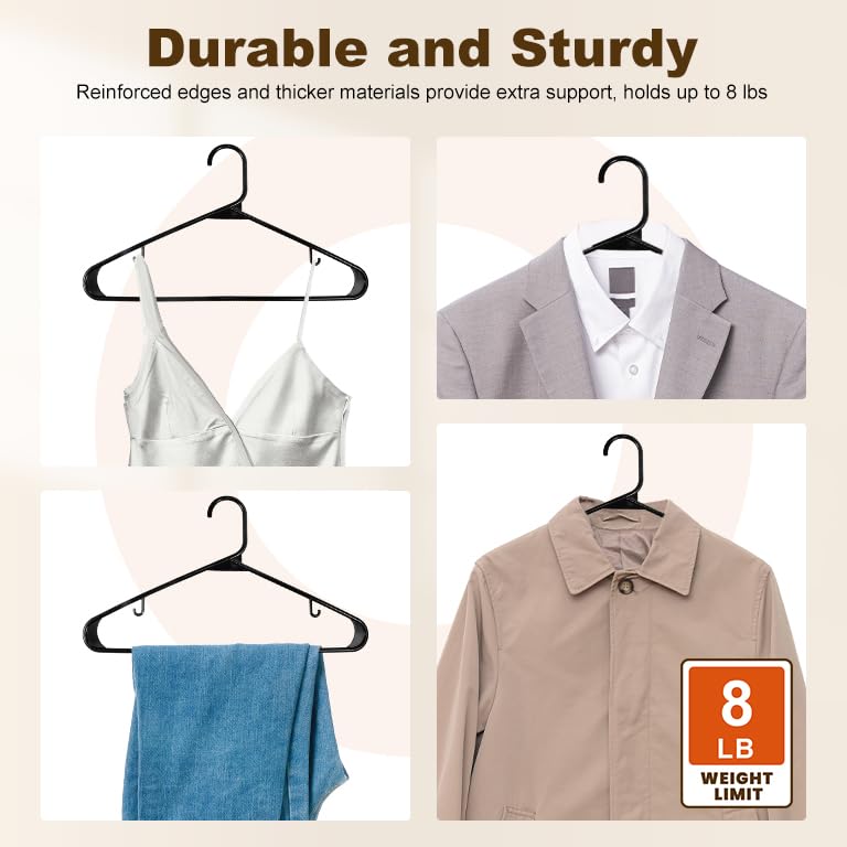 HOUSE DAY Black Plastic Hangers 60 Pack, Clothes Hangers with Non Slip Hooks, Durable & Space Saving Coat Hanger, Light-Weight Clothing Hanger, Perfect Closet Organizer for Everyday Use