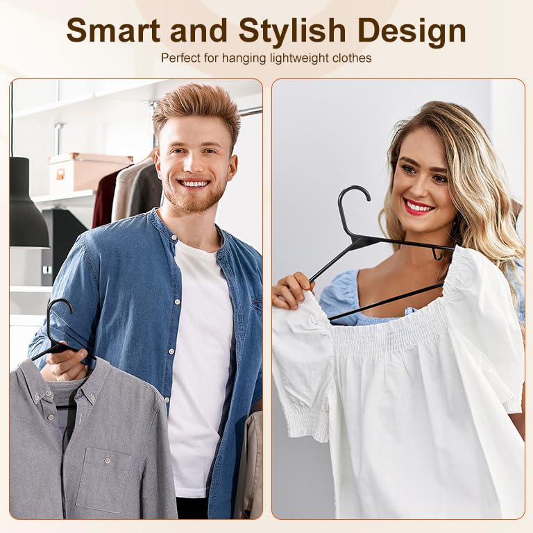 • Durable Clothes Hangers – These black plastic hangers were designed to be strong, yet flexible, making them perfect for lightweight clothes. The unique design allows the edges to bend, and stay bent without breaking