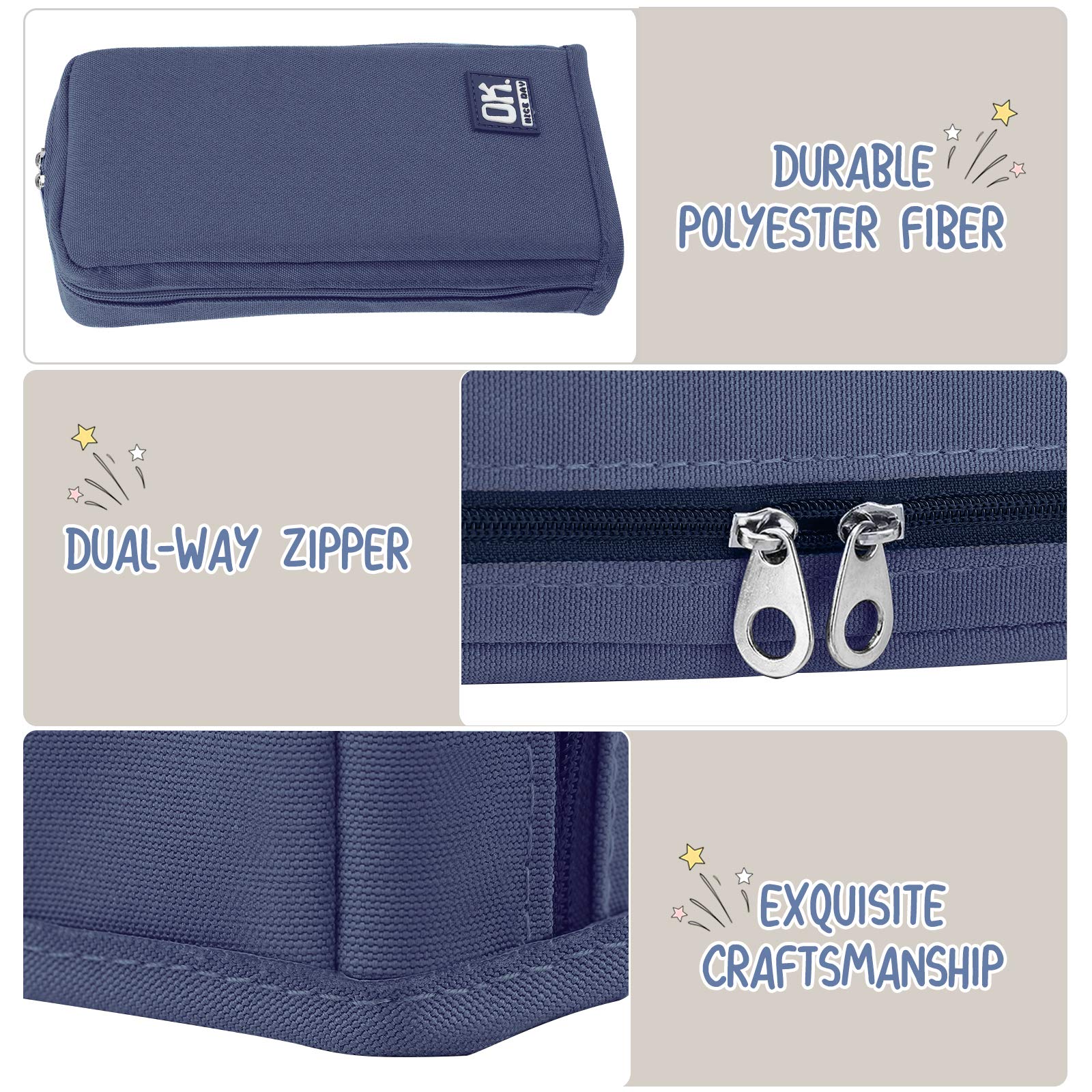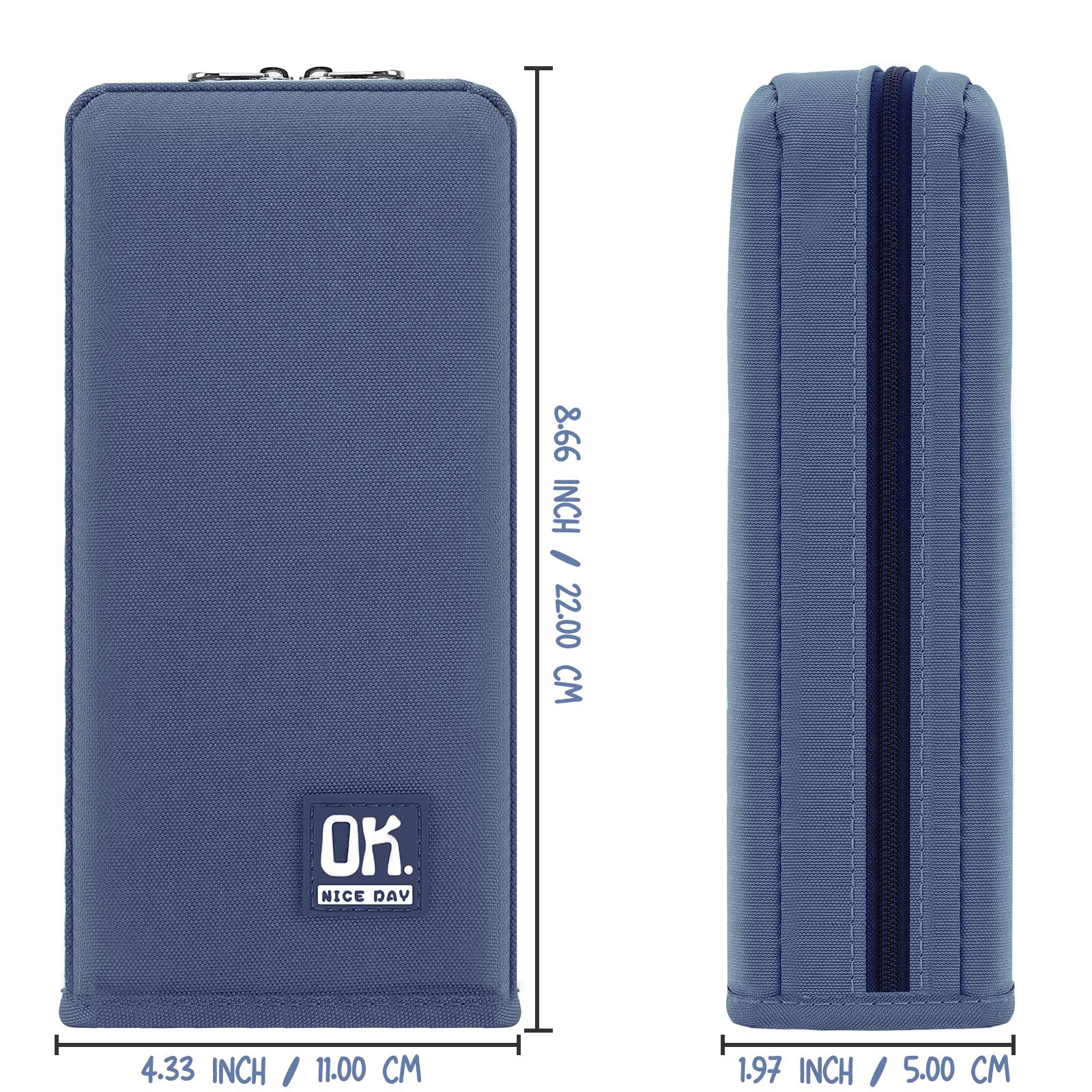 Housolution Standing Pencil Case Large Capacity Pen Bag, Multi-Layer Pen Pouch Pencil Holder Stationery Organizer, Polyester Pencil Bag Storage Box Desk Organizer, Blue