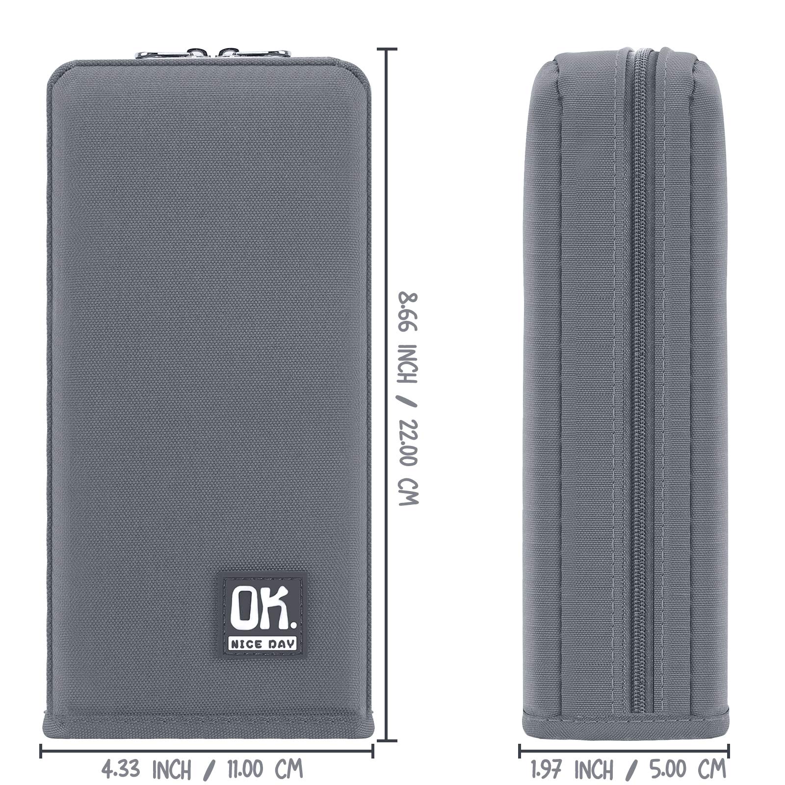 Housolution Standing Pencil Case Large Capacity Pen Bag, Multi-Layer Pen Pouch Pencil Holder Stationery Organizer, Polyester Pencil Bag Storage Box Desk Organizer, Gray