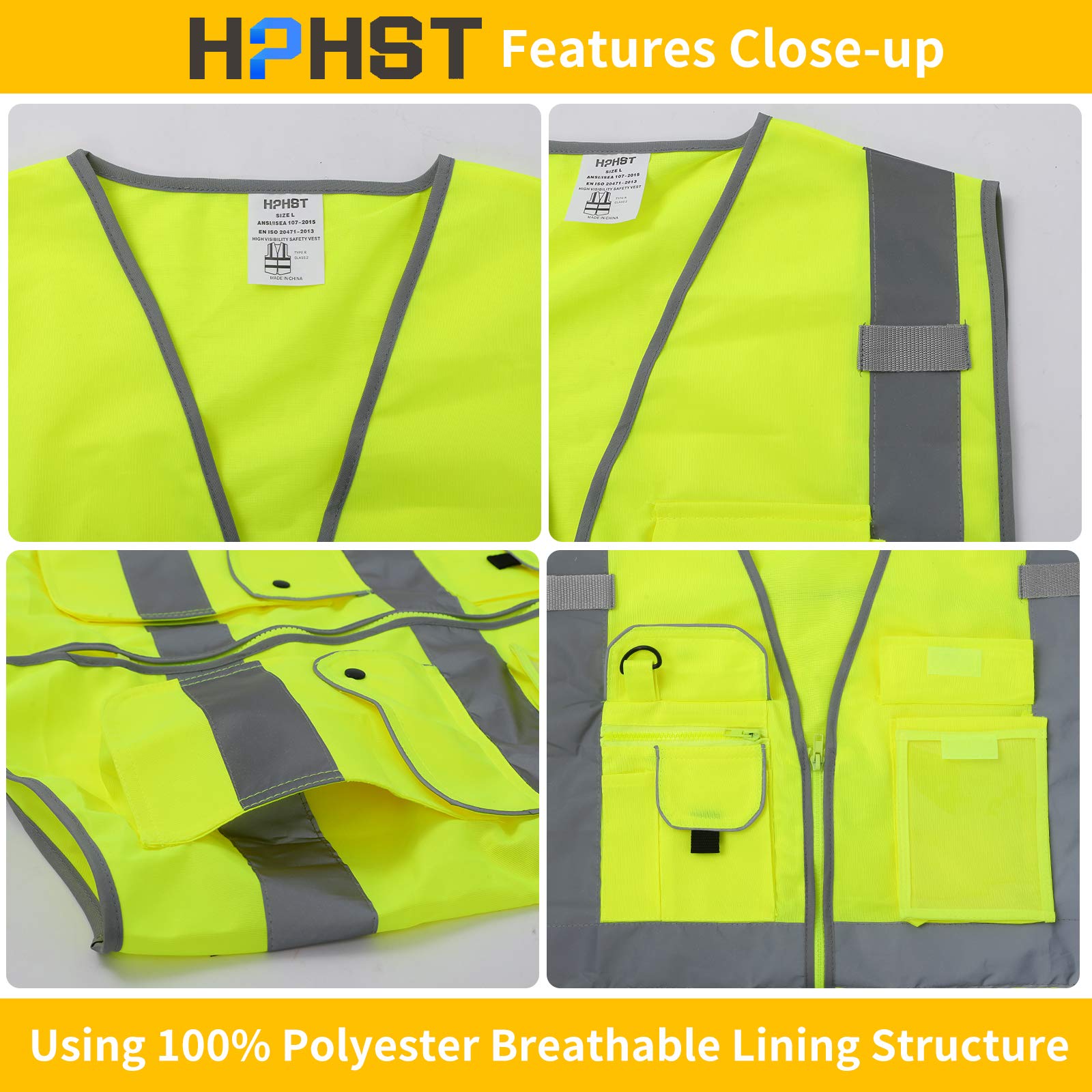 HPHST High Visibility Cycling Vest for Men and Women with Zip Reflective Vest Work Vest EN ISO 20471