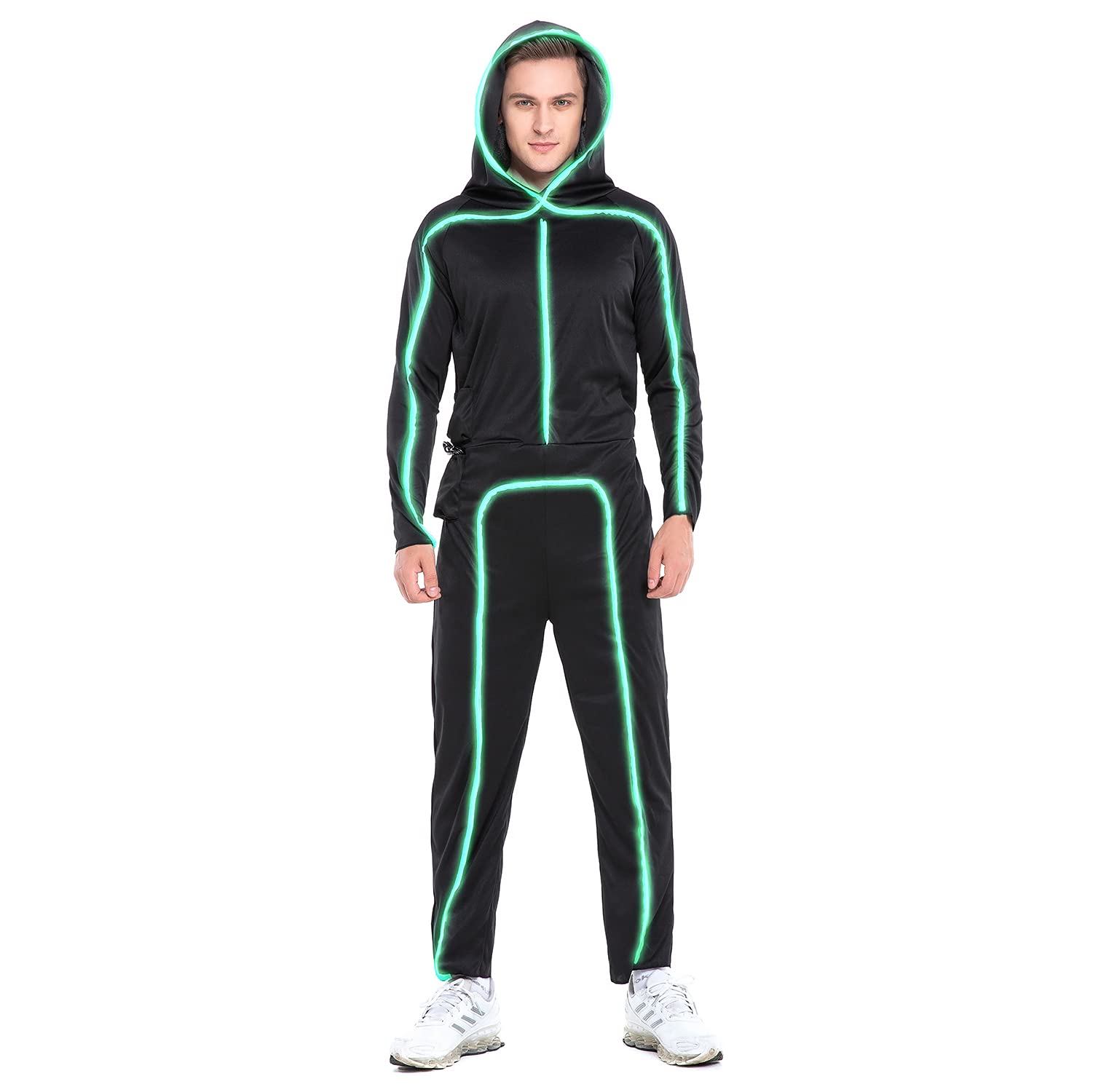 HSCTEK Light Up Stick Figure Costume Adult, Halloween Led Stick Man Costumes Youth Men Women, Glow in Dark Stickman Cosplay (Fluorescent Green, Large)