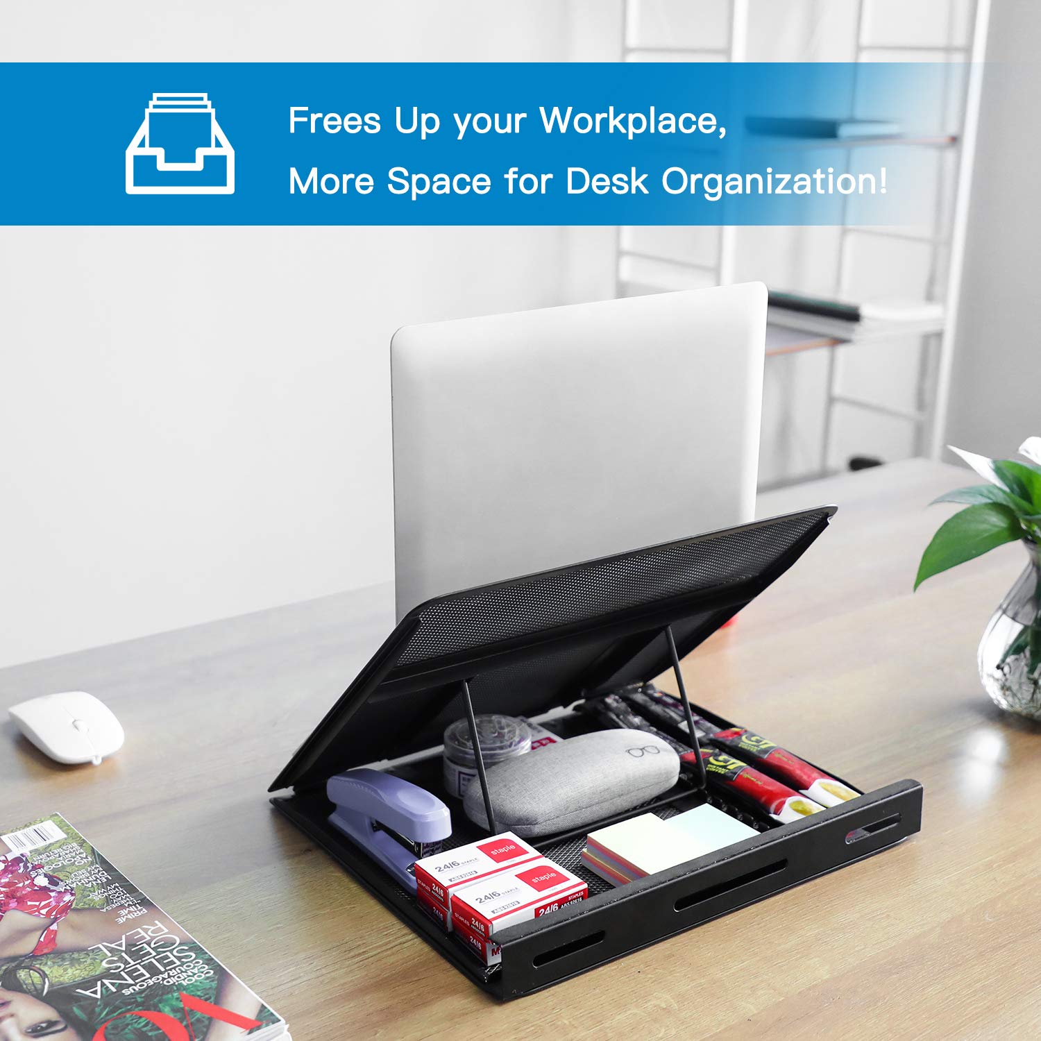• INVISIBLE STORAGE SPACE & CLUTTER-FREE DESK - This laptop riser designed with storage room under the mesh platform to clear up the mess and keep desk tidy