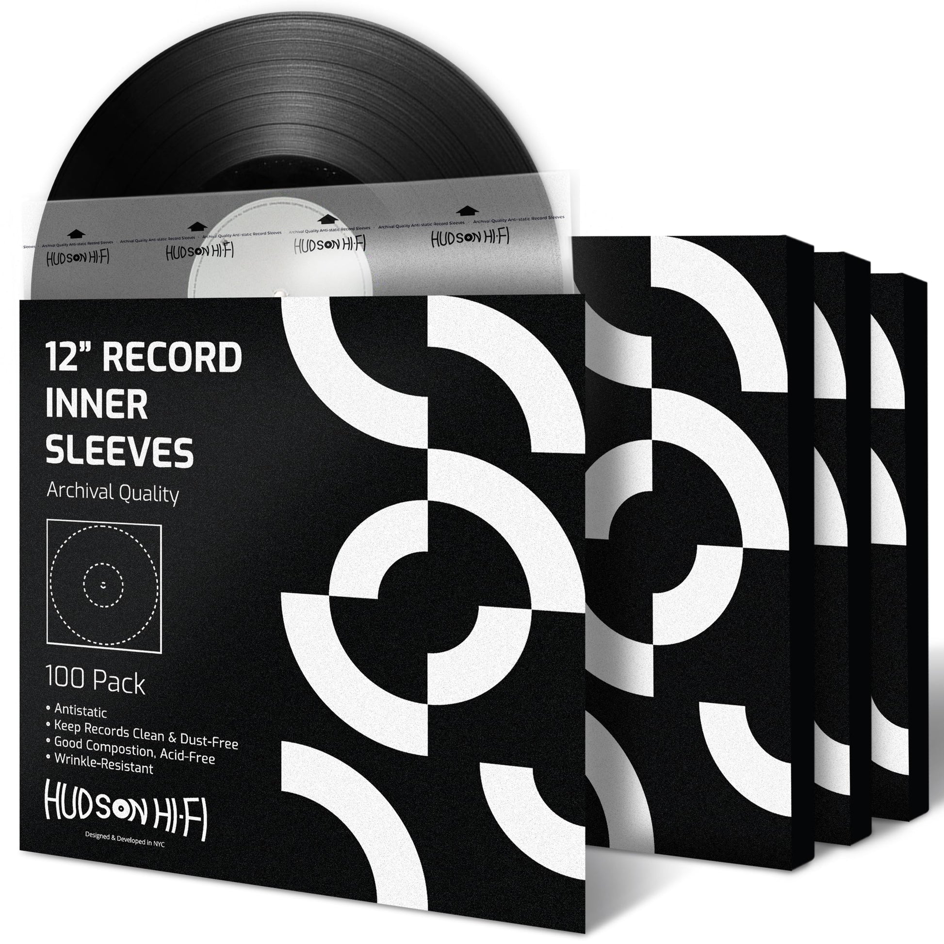 Hudson Hi-Fi Anti-Static Vinyl Record Inner Sleeves 100 Pack - Durable Clear Disc Sleeves- Protect Your LP Albums from Scratches, Dust & Dirt - Acid-Free Rice Paper Interior Disc Covers