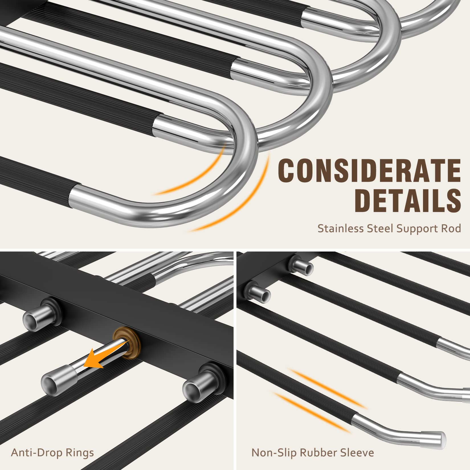 HUITEM Space Saving 6 Tier Pant Hangers, Anti-Slip, Stainless Steel, 2 Pack, Black