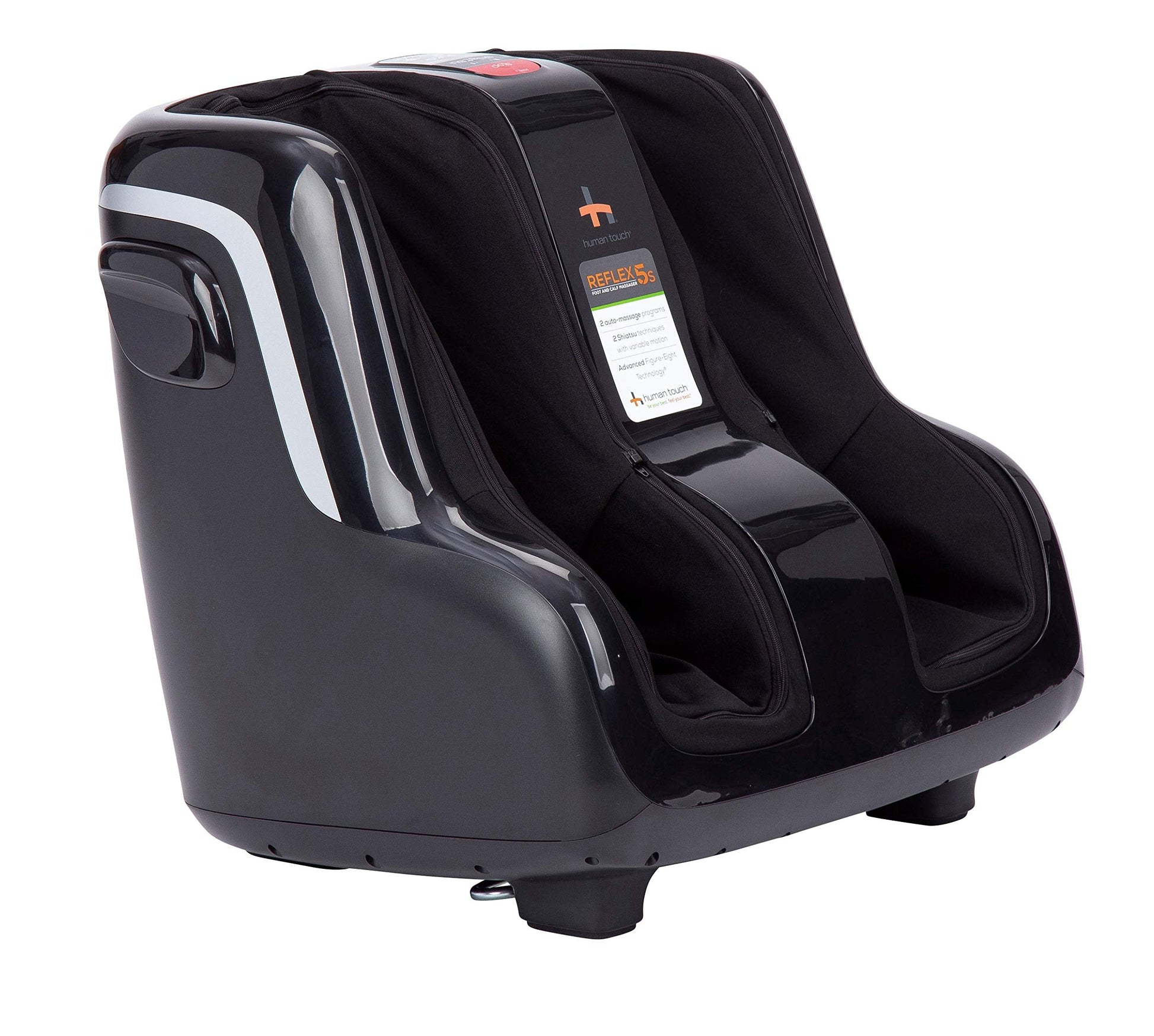 Details: Experience instant relief and welcome a healthier body with the Reflex5s Foot and Calf Massager from Human Touch! Engineered from heavy-duty materials that are carefully combined to give you a better experience, this massager is perfect after a long day. Developed to transfer a powerful reflexology massage that brings the body back into its natural balance to help encourage the body's natural healing. This massager invites targeted relief by offering improved circulation, quick recovery for stressed feet, and rejuvenated muscles. It transports deeply-penetrating vibrating foot massage for added relaxation and instant pain relief. The Relflex5s Massager is reinforced with Cirqlation figure-eight patented technology designed to circulate the blood from the feet toward the core of the body. It allows fresh nutrients to travel and re-enter the calves and feet, making room for greater healing and comfort. Improved with under-foot massage rollers and warm air technology developed to release warm, flowing air to relieve tension and soreness. Built with a two intensity setting, this massager gives you the freedom of selecting the intensity best suited for your needs. Completed with an adjustable tilt base for your perfect massage angle. Soothe, refresh, and relieve with the Relflex5s Massager from Human Touch!
