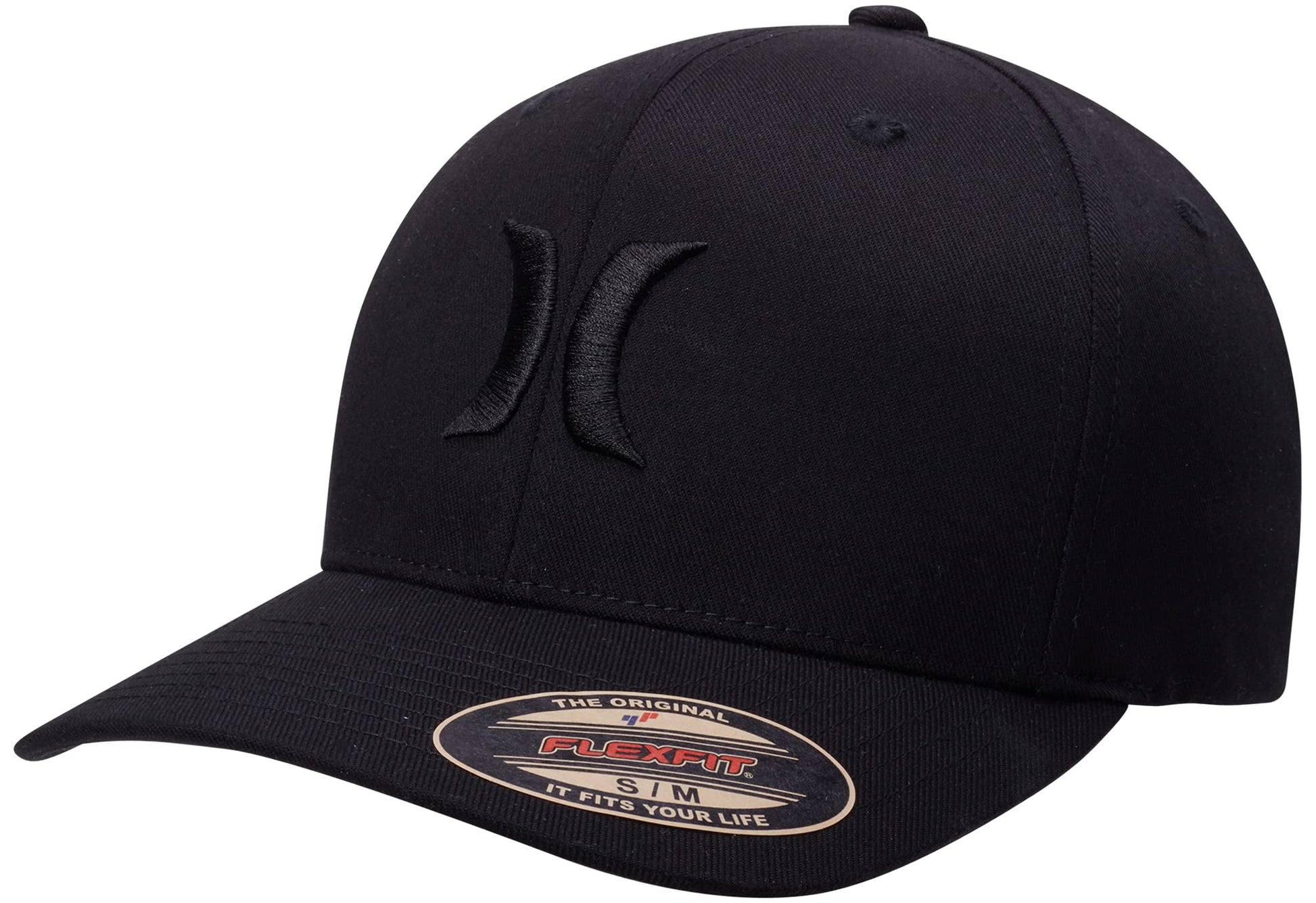 Hurley Mens Baseball Cap - Flexfit Fitted Baseball Caps for Men (Sizes: S-XL), Size Large-X-Large, Black/(Black)