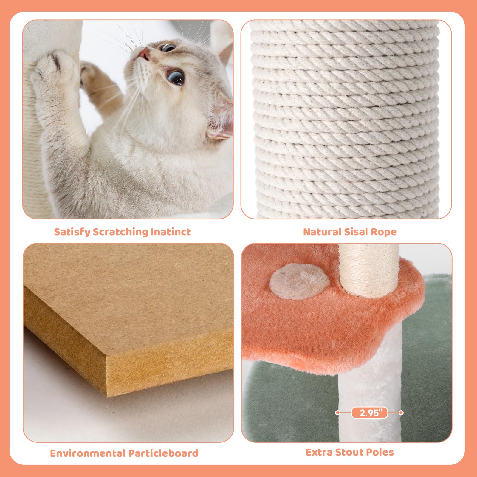 • Premium Materials:Made with CARB-certified P2 particleboard and 400g soft plush for comfort. Features 9-core 6mm sisal scratching posts, more durable than regular sisal, to satisfy your cat's scratching instincts and protect your furniture.