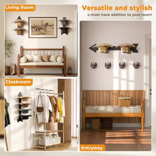 • Vintage Decor Hat Holder: Made of quality solid wood with arrow elements and finish with black color, and the matte finished black bracket will add a touch of the wild west to your room. The collision of classic cowboy style and modern western aesthetics will be an unique charm on your house, also you don't need to purchase any wood like others cowboy hat holder