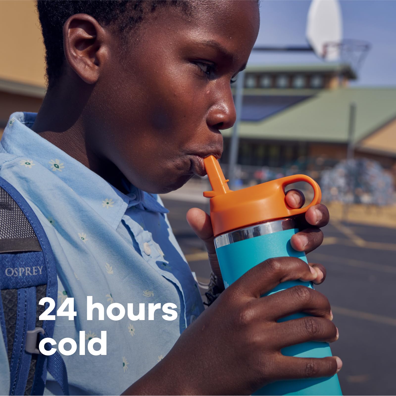 Details: Keep playtime going with refreshment ready and waiting on the sidelines. Double-wall vacuum insulation keeps beverages cold for up to 24 hours. The slim silhouette makes it easy for little hands to hold and fits in most cupholders. With a colorful, easy-to-clean Straw Cap and cute Bottle Boot, it’s the perfect companion for any adventure.