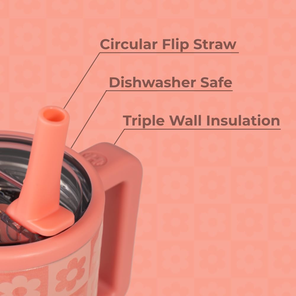 HydroJug Kids - 20 oz Insulated Kids Water Bottle with Flip Straw & Handle | Leak-Proof & Durable | Perfect for School, Sports, Lunch, Travel & Camp, Daisy Checkers