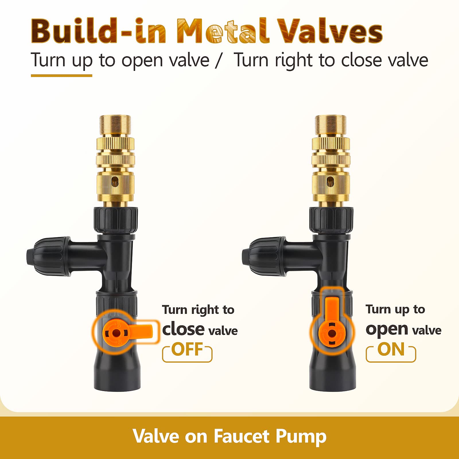 • Fits for most faucets: build-in 3 size metal adapters that can fits female 15/16-27 thread, 13/16-27 thread or a male 55/64-27 thread, constructed with on/off valve, the valve on the faucet pump can be control water flow direction. The valve on the gravel tube can be adjusted total water flow