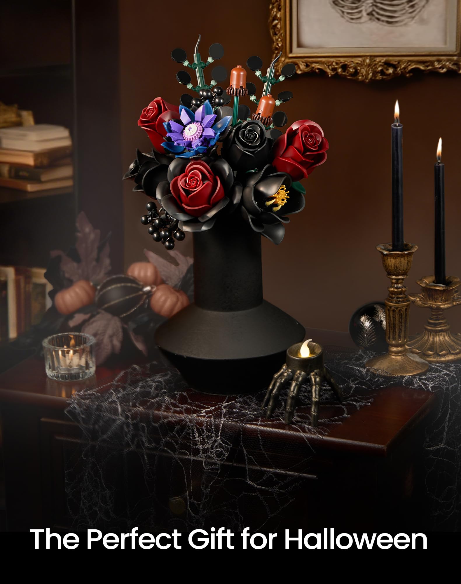 • [Chic Home Decoration] - Elevate your home or office with this elegant on Halloween or Christmas, one-of-a-kind flower bouquet building kit arrangement. A timeless piece and no maintenance cost, perfect addition to fans of gothic art and unique wildflower bouquet collection