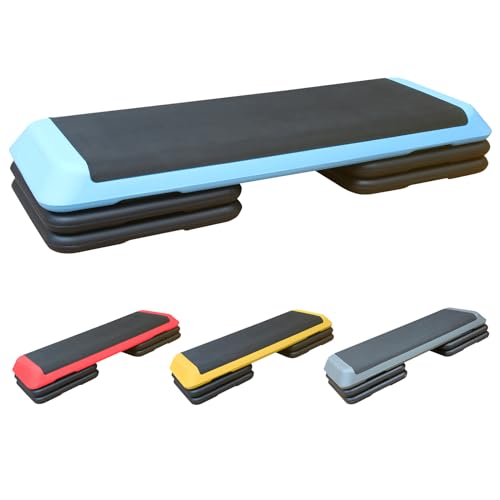 • 💪🏼3-level Height Adjustable: 4' - 6' - 8' height adjustment to change levels easily with 4 extra risers, customize for a variety of aerobic and strength exercises. It is durable yet lightweight and offers a safe and enjoyable way to improve muscle tone, and overall well-being.