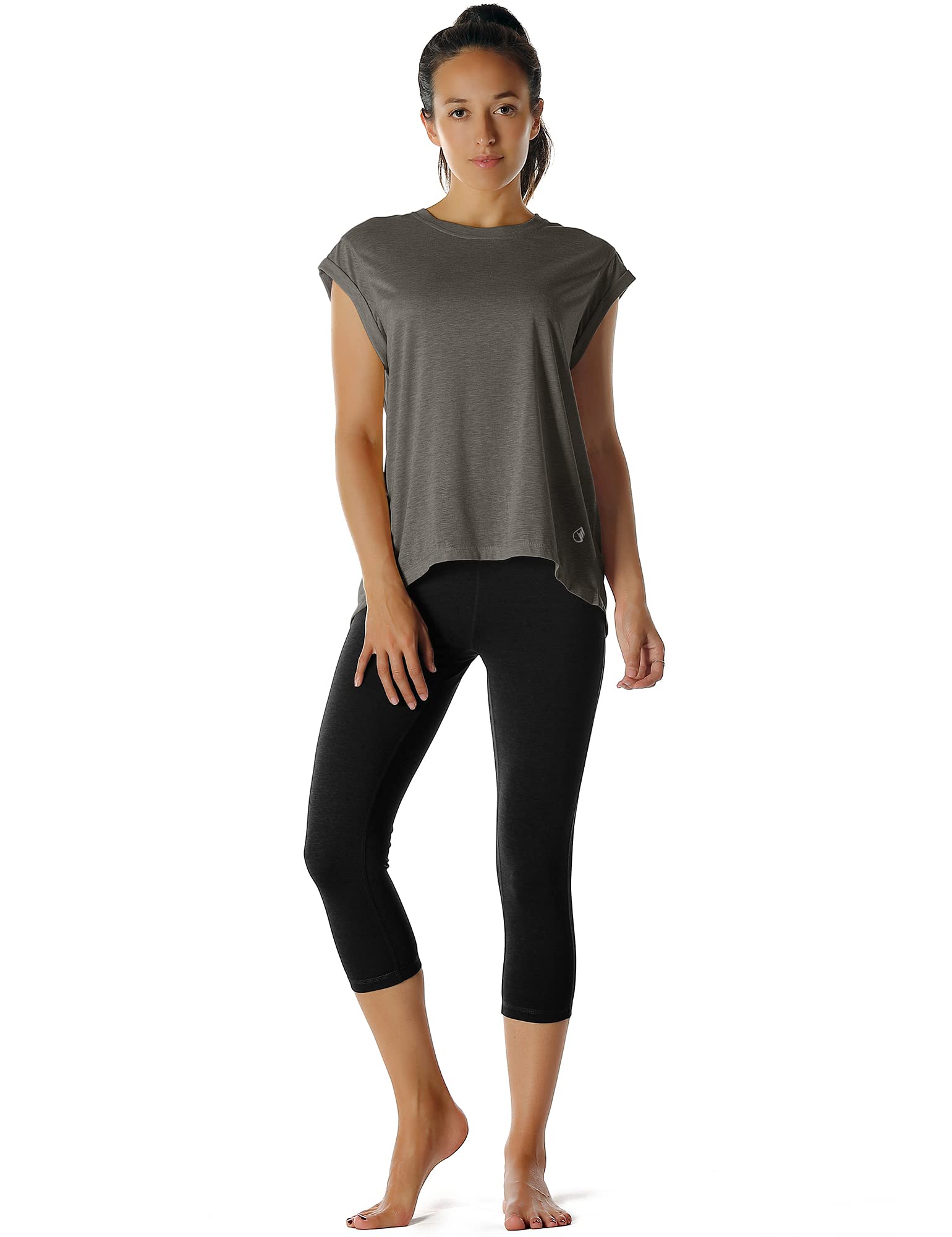 icyzone Open Back Workout Top Shirts - Yoga t-Shirts Activewear Exercise Tops for Women (M, Charcoal)