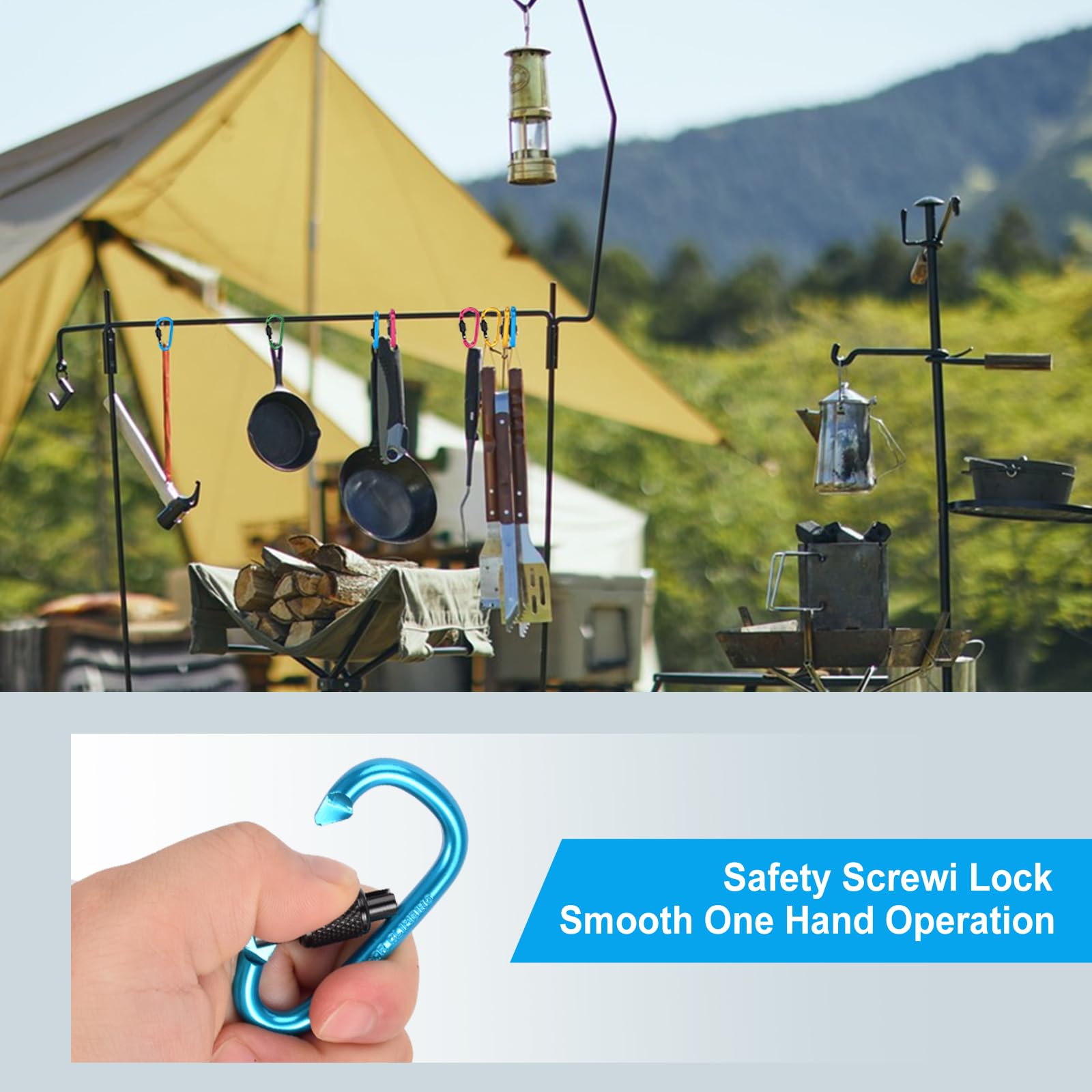 IEBUOBO 10 Pack Aluminum D Ring Key Rings Hiking Clips Locking Carabiner for Hiking Camping Fishing and Outdoor Use,Clips with Screw Gate Multicolored