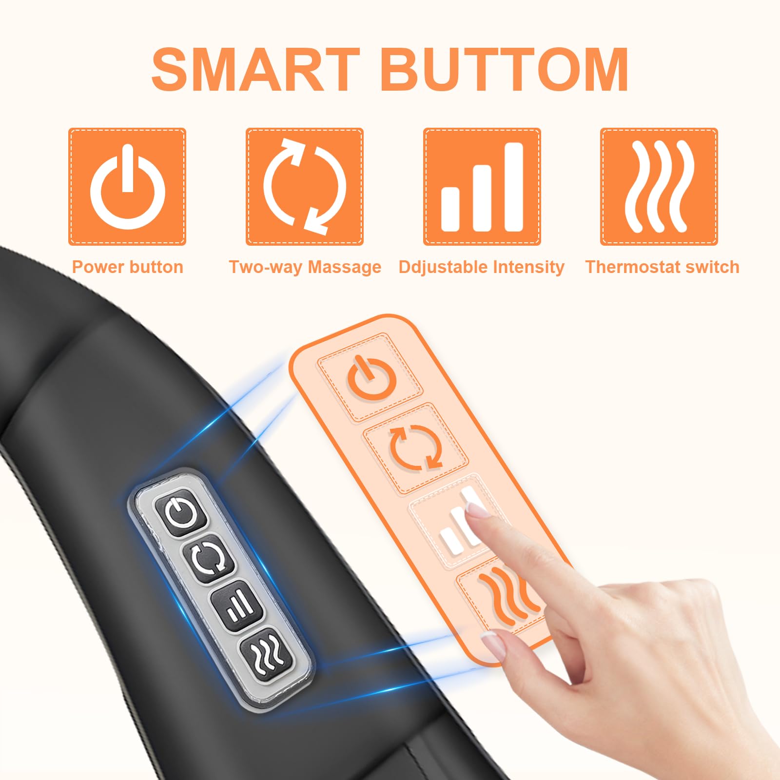 • 【Deeper Kneading Massage】--- Neck massager uses 16 Bi-directional rotation kneading massage heads Continuously deliver greater massage intensity by simulating movement techniques of real people,effectively relieving all kinds of discomfort in various parts of the body.the back and neck massager can also massage your back, waist, limbs, and shoulders along with being very effective at providing your neck with the comfort.