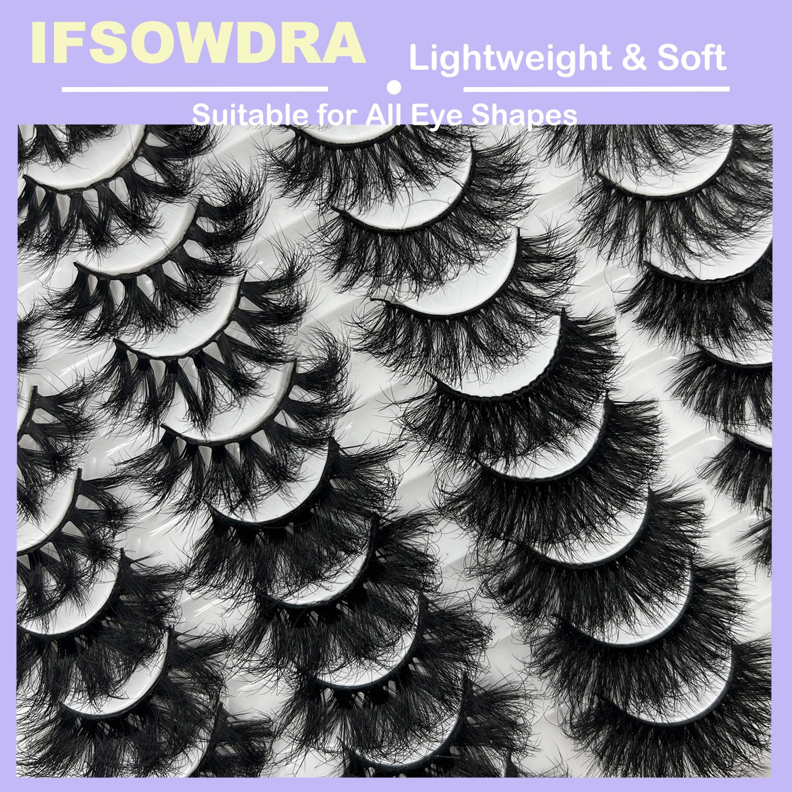 IFSOWDRA Mink Lashes Strip D Curl Volume 20/25mm Long Dramatic Lashes 3D Mink Cat Eye Eyelashes Pack, Wispy False Eyelashes Natural Look (4 Styles)