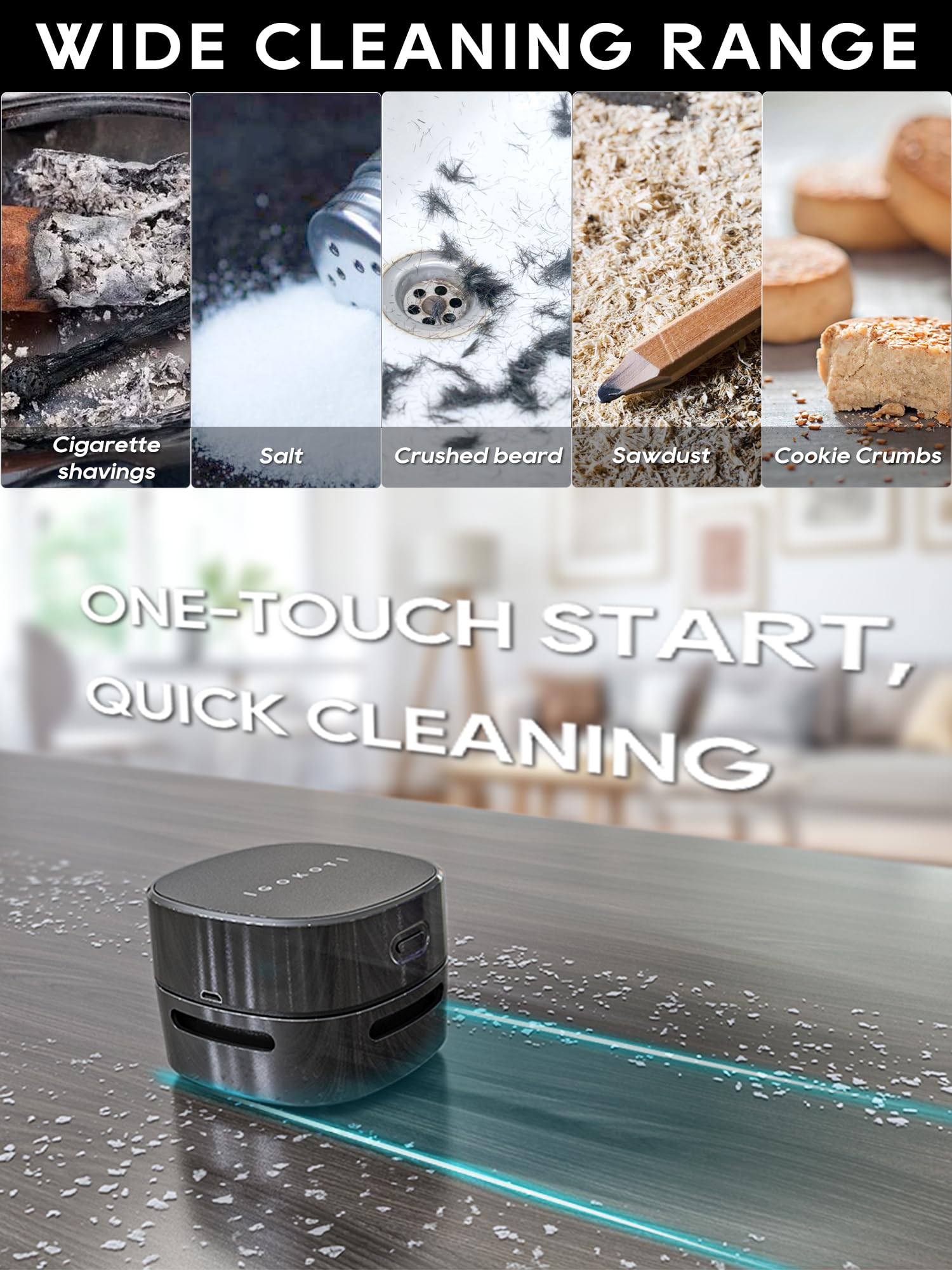 • 【One Key Switch Operation】Your Table Vacuum Cleaner is very easy to operate. Suitable for students and elderly. It is Portable and Cordless.You just hold it by your hand and move it.Our table cleaner will save from the annoying little mess in life and clean all around your home and car.
