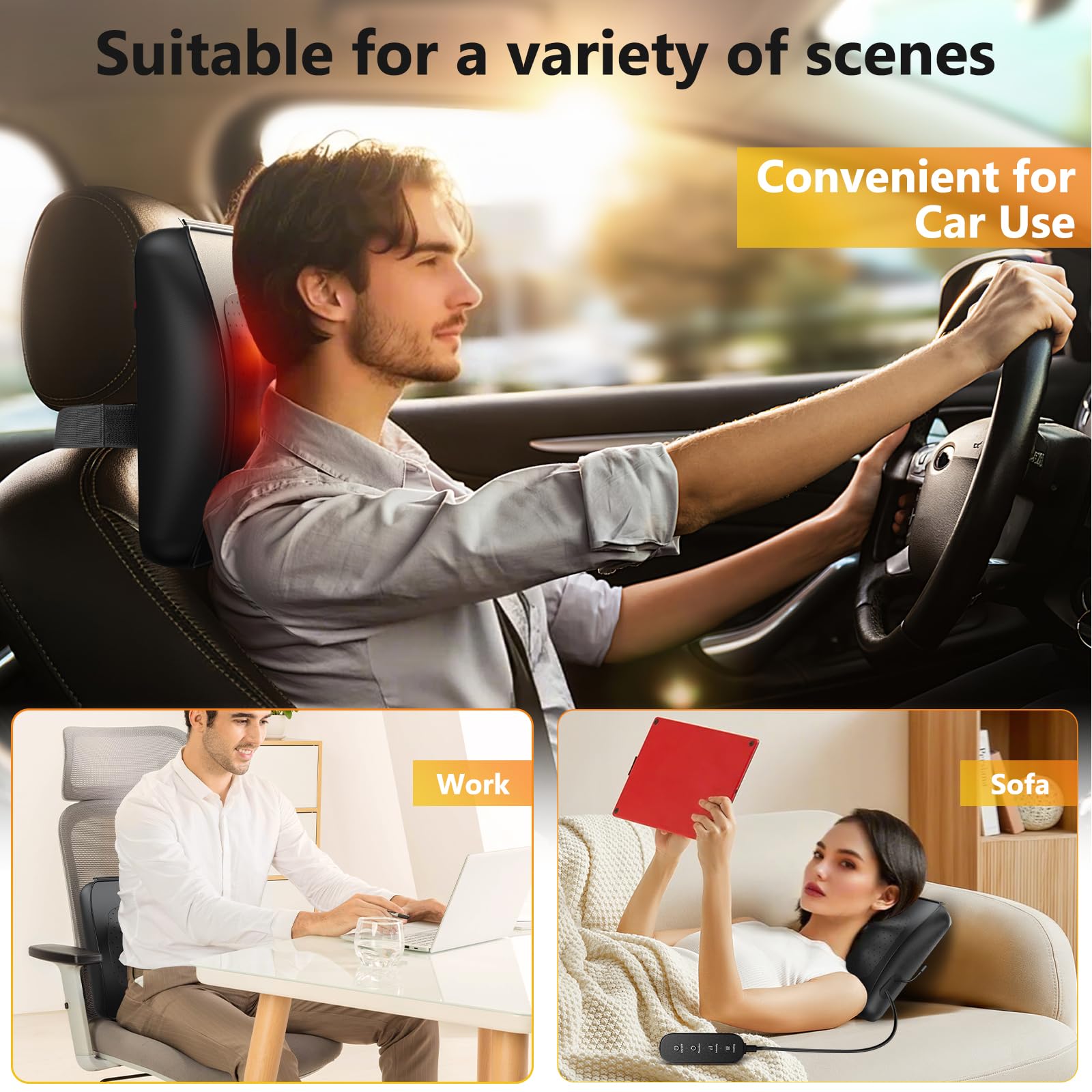 • 【Portable Massage Pillow】Shiatsu back massager comes with regular adapter (110-240V) and car adapter (12V). You can get a professional massage at home, in the office, or in your car.