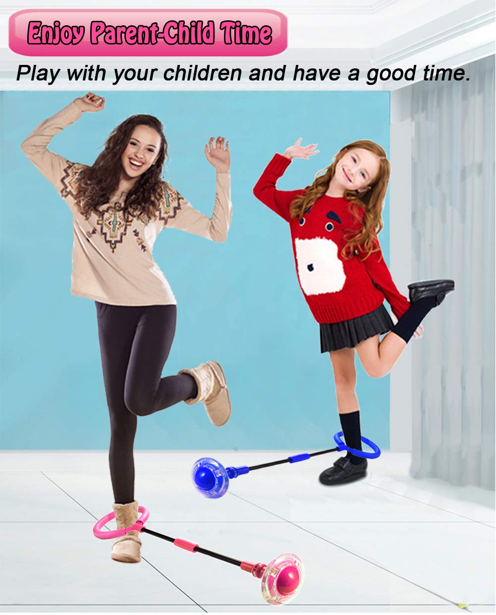 ILNCLUY Foldable Ankle Skip Ball Flashing Jumping Ring Colorful Sports Swing Ball, Fitness Fat Burning Jump Rope Game for Boy and Girl (Pink)