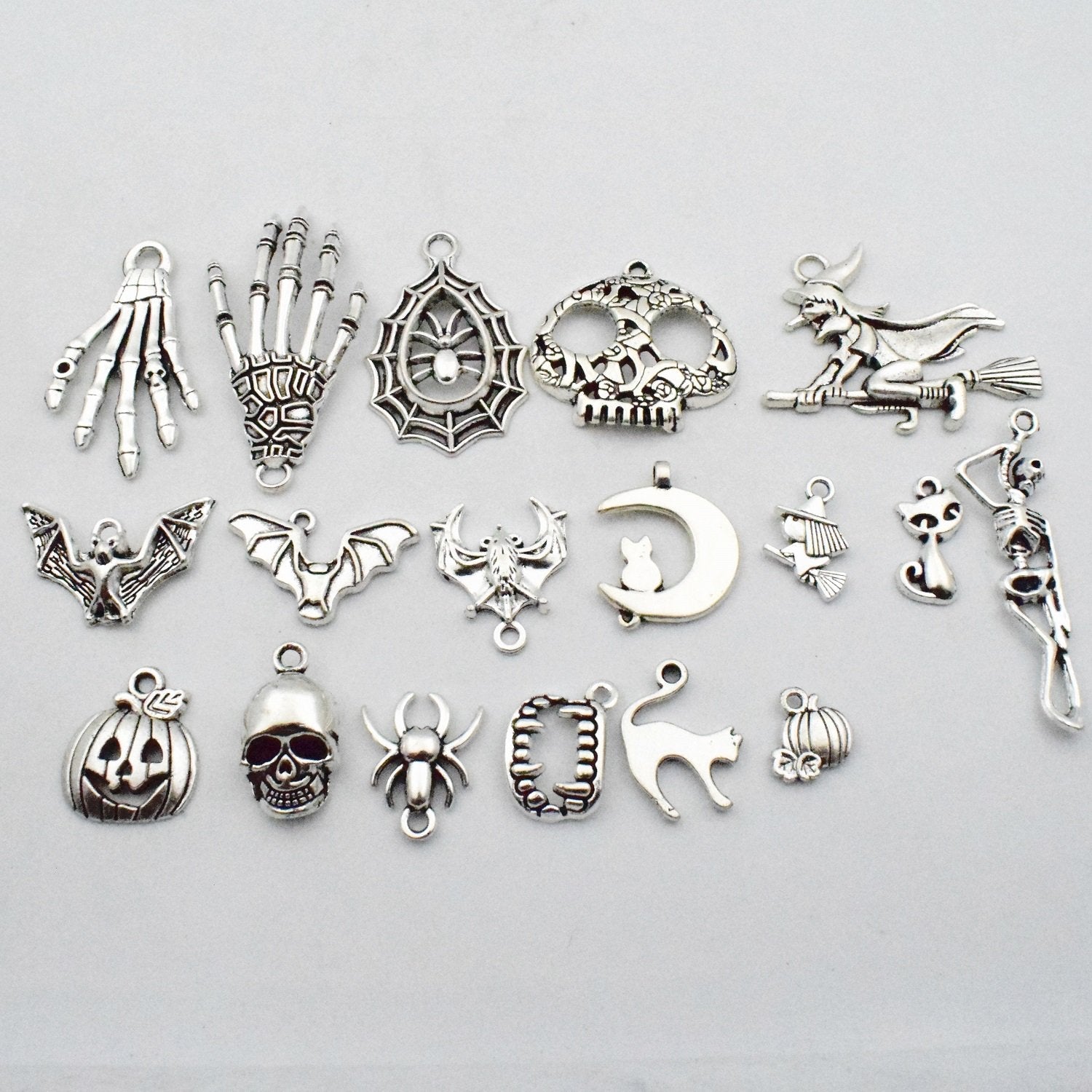 iloveDIYbeads Halloween Charm-100g(about 55-60pcs) Antique Silver Halloween Collection Craft Supplies Charms Pendants for Crafting, Jewelry Findings Making Accessory For DIY Necklace Bracelet (M001)