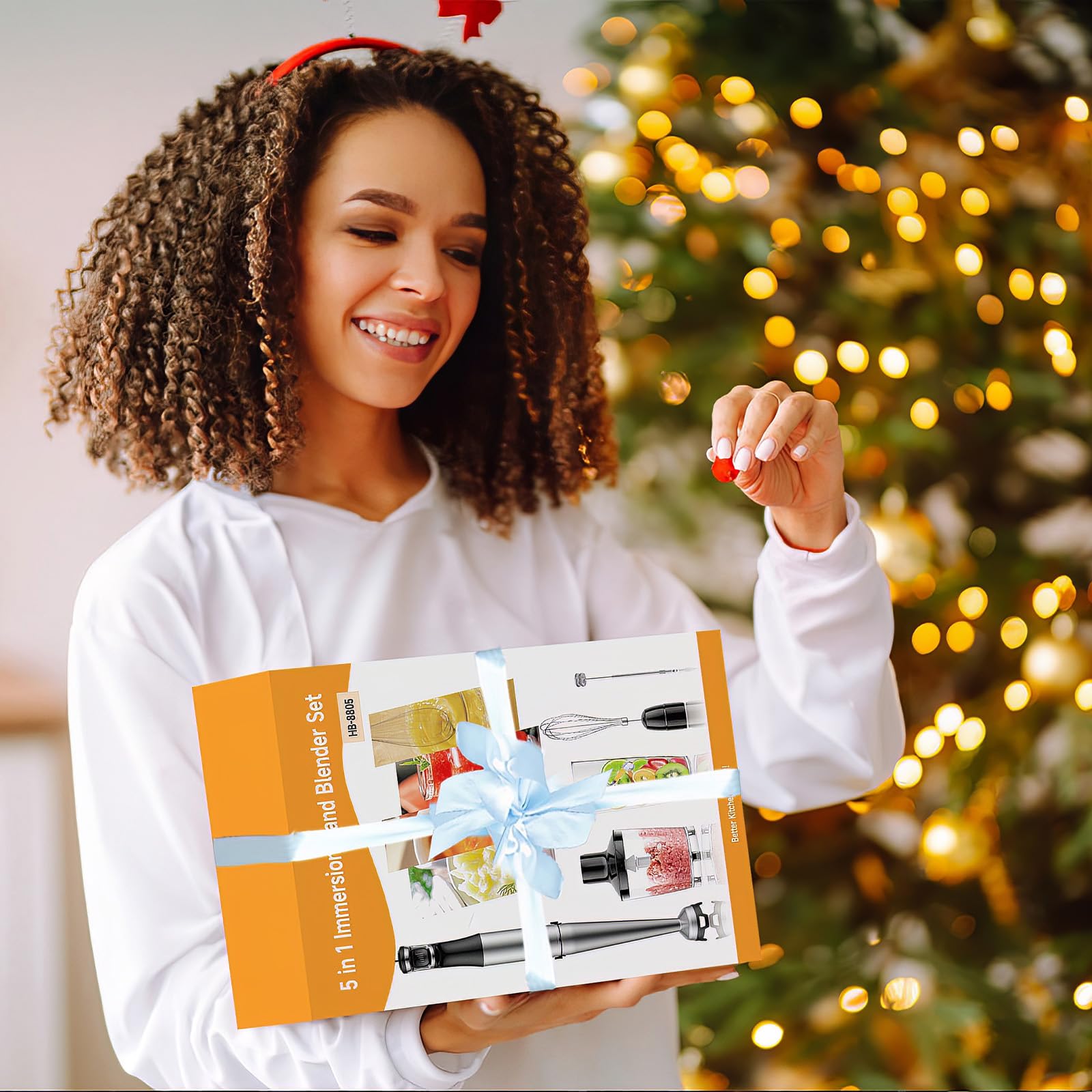 Immersion Blender Handheld Corded Hand Blenders Set 1100W, Trigger Variable Speed 5 in 1 Stick Emulsifier with Chopper, Whisk and Frother for Soup, Baby Food and Smoothies