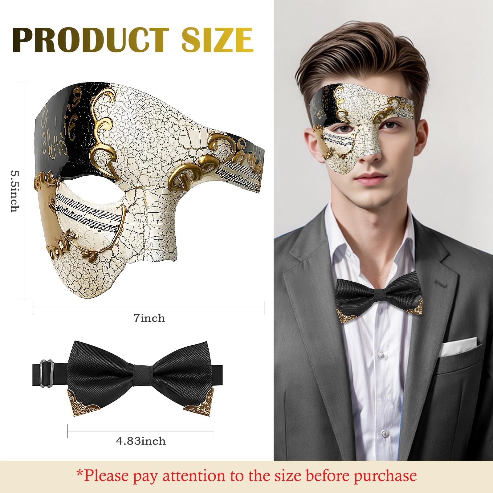 IncreDecor Masquerade Mask for Men Phantom of The Opera Half Face Mask with Bowtie, Venetian Masks for Halloween Party (Black)
