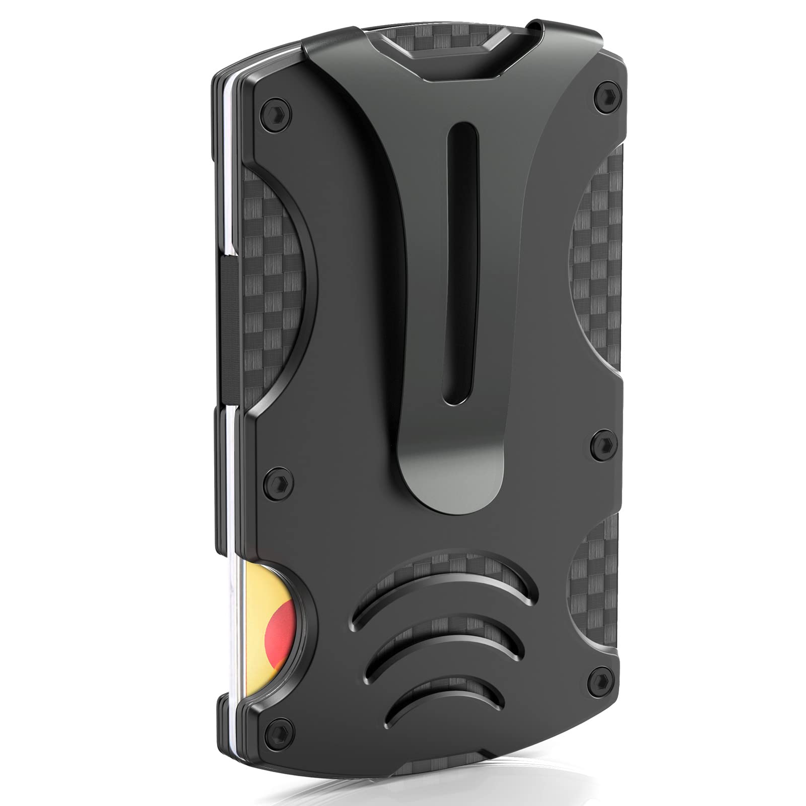 INECOKS Tactical Wallet, Carbon Fiber Wallet, Metal Money Clip Wallet, RFID Blocking Minimalist Wallet for Men Slim Aluminum Credit Card Holder