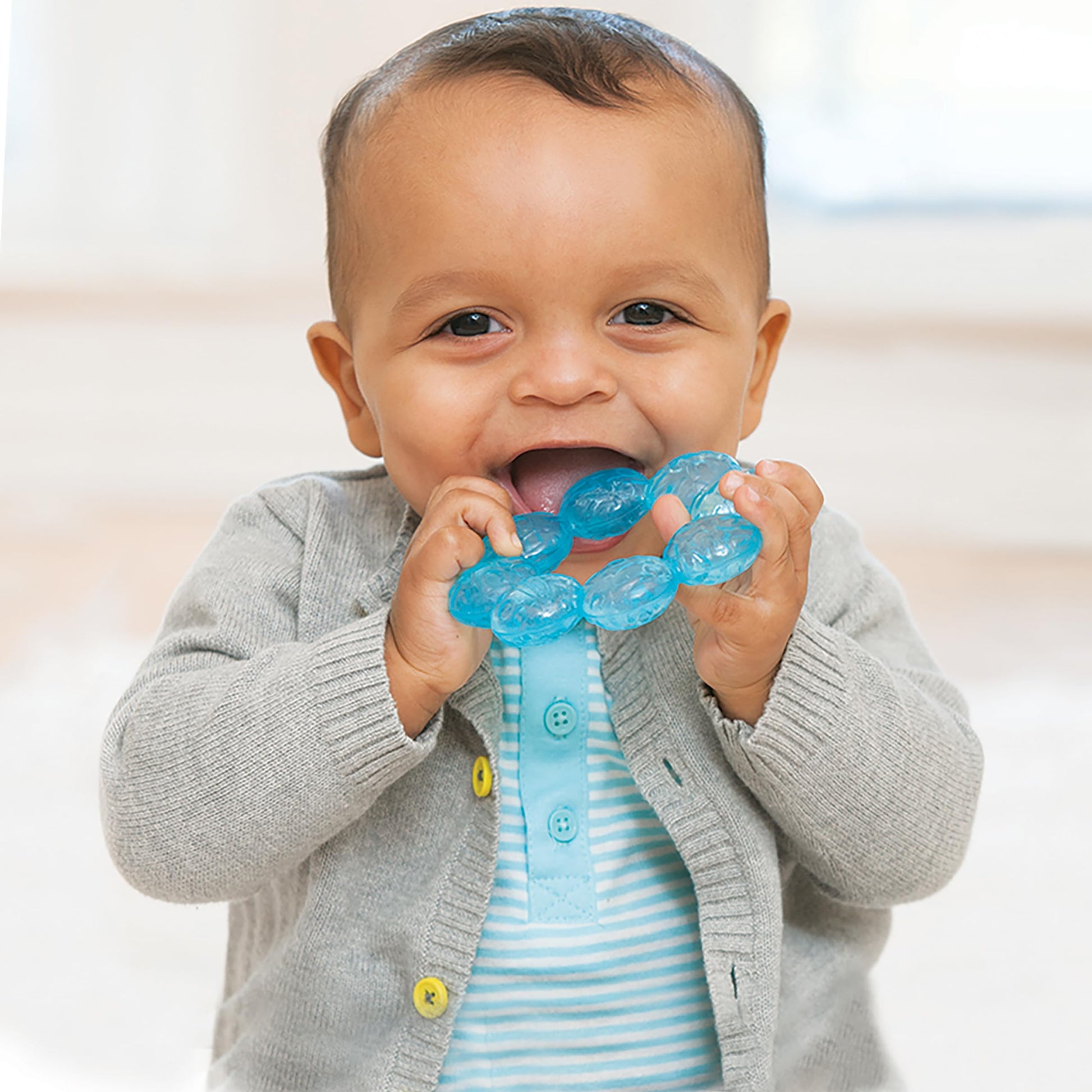 • EASY-TO-HOLD CIRCULAR DESIGN: Specially designed for little hands, these lightweight and compact teethers feature a circular shape that’s effortless for babies to grasp, hold, and bring to their mouths for self-soothing