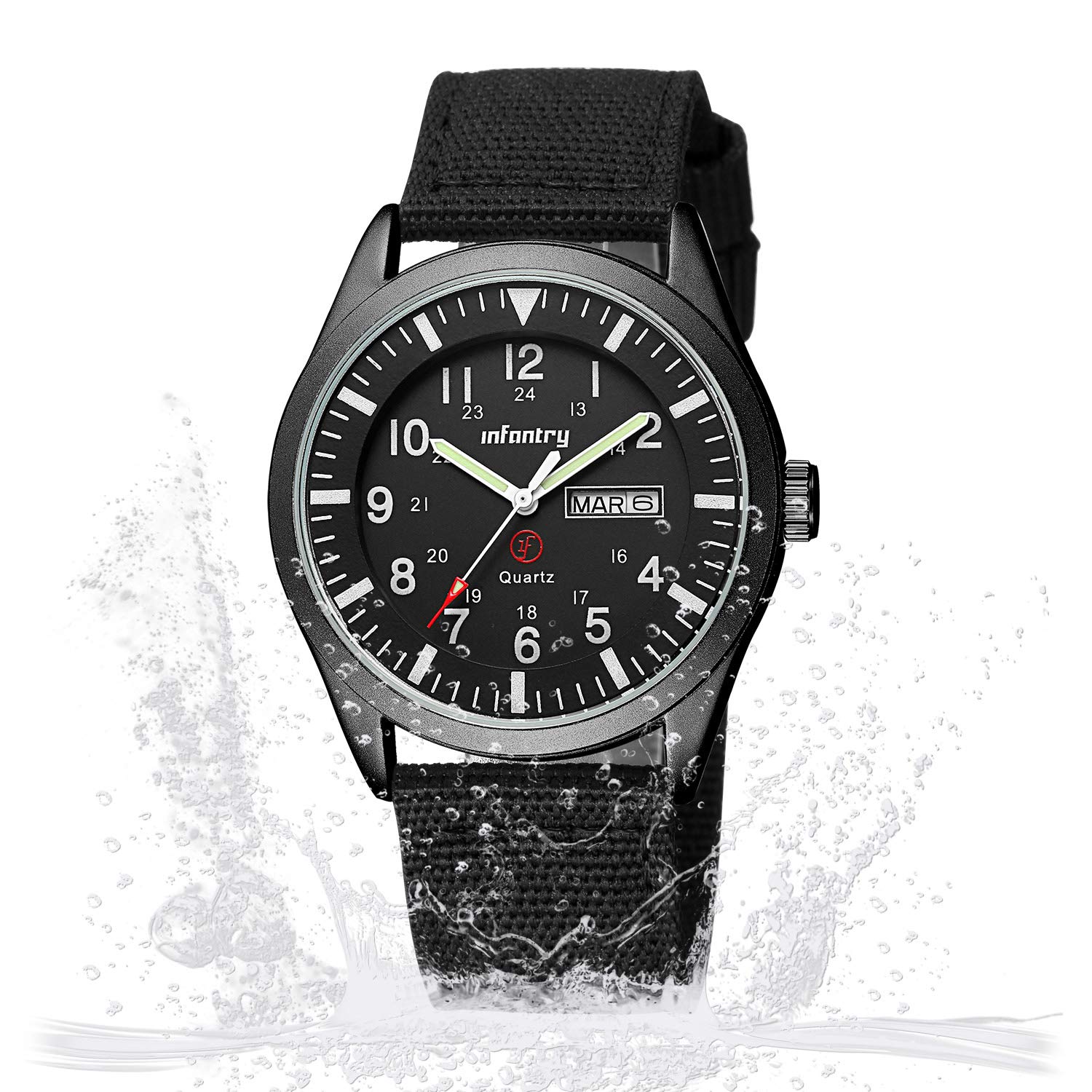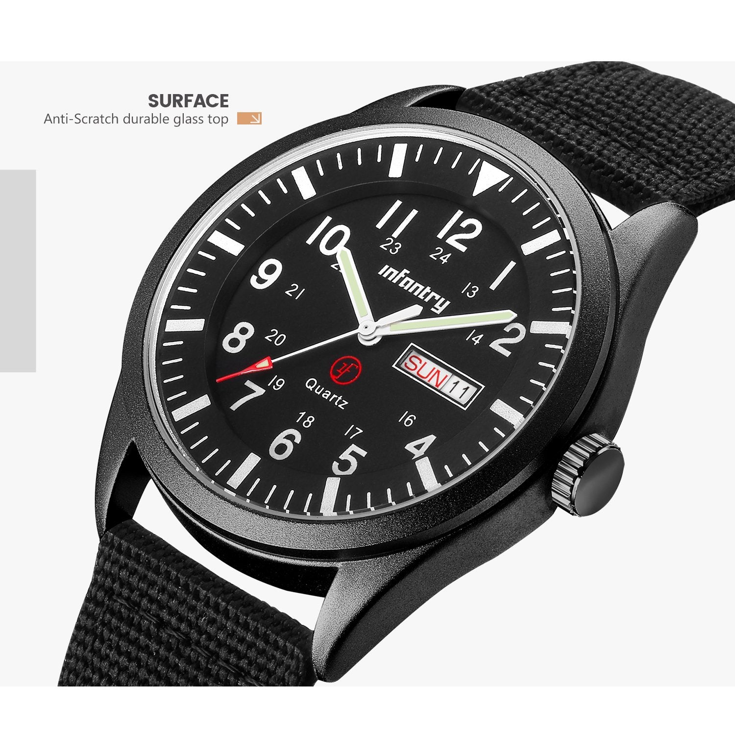 Infantry Mens Military Army Outdoor Sport Watch Field Tactical Black Wrist Watches for Men Waterproof 24 Hour Work Date Day Analog Wristwatch Nylon Band
