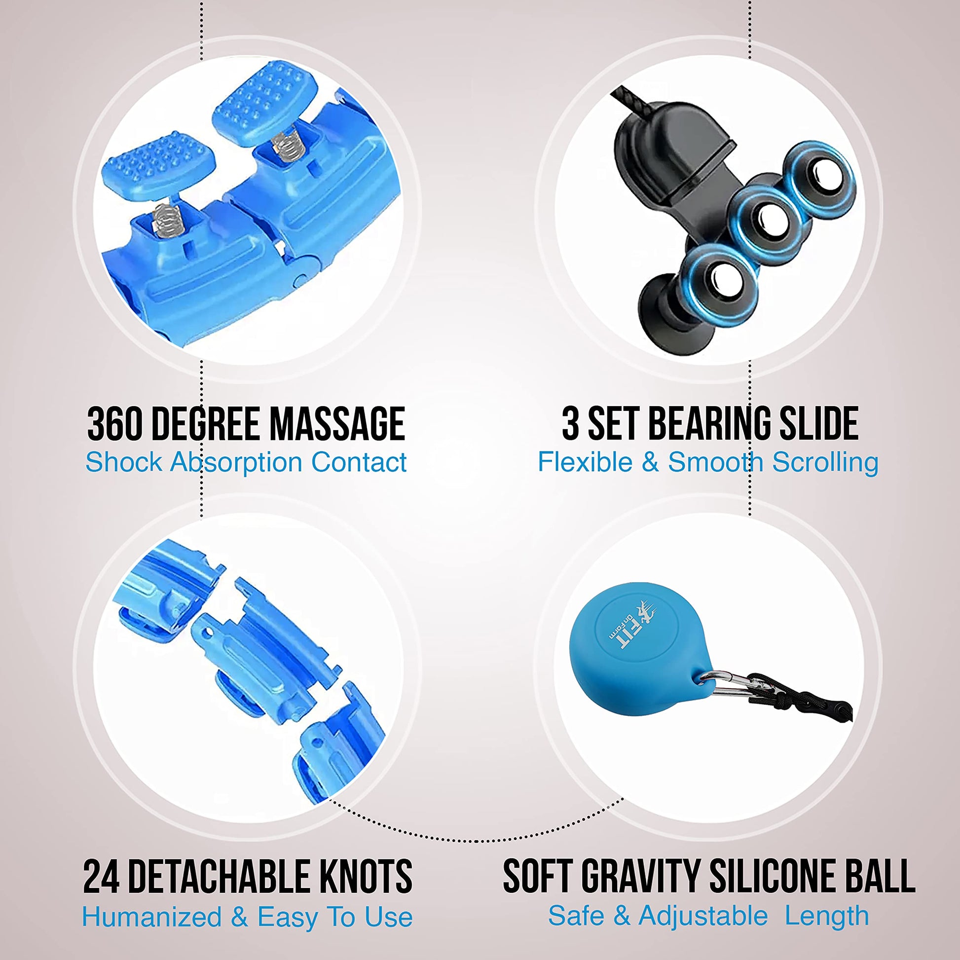 • Fits All Sizes And Shapes - Our fitness hoop consists of 24 detachable knots which can be adjusted easily according to your waistline, suitable for waist sizes up to 47 inches.