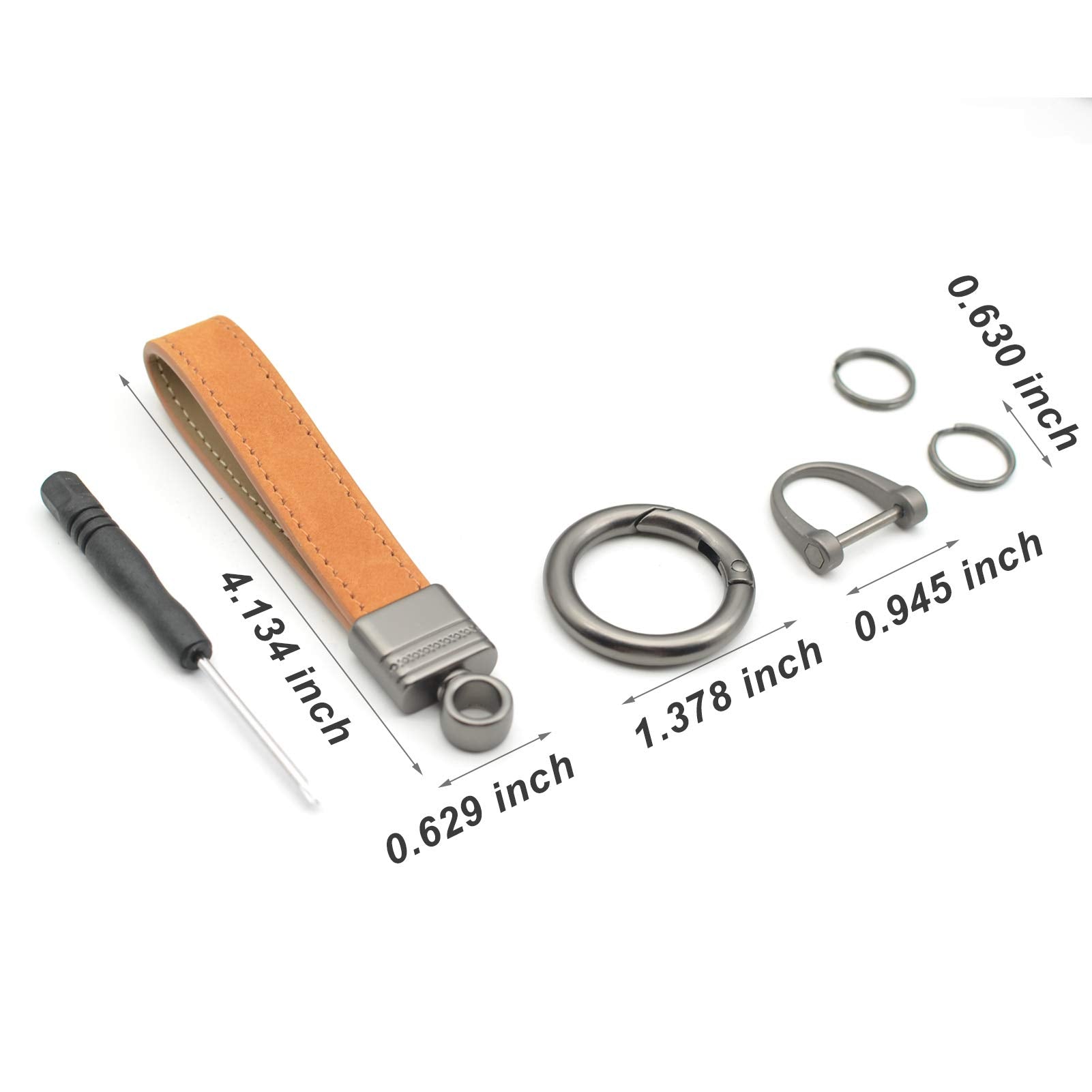 • Functionality - Genuine leather car keychain metal clip with 360 degree rotatable swivel, quick-release circle carabiner clip is easy to attach and remove your vehicle keys with D-ring and key rings.