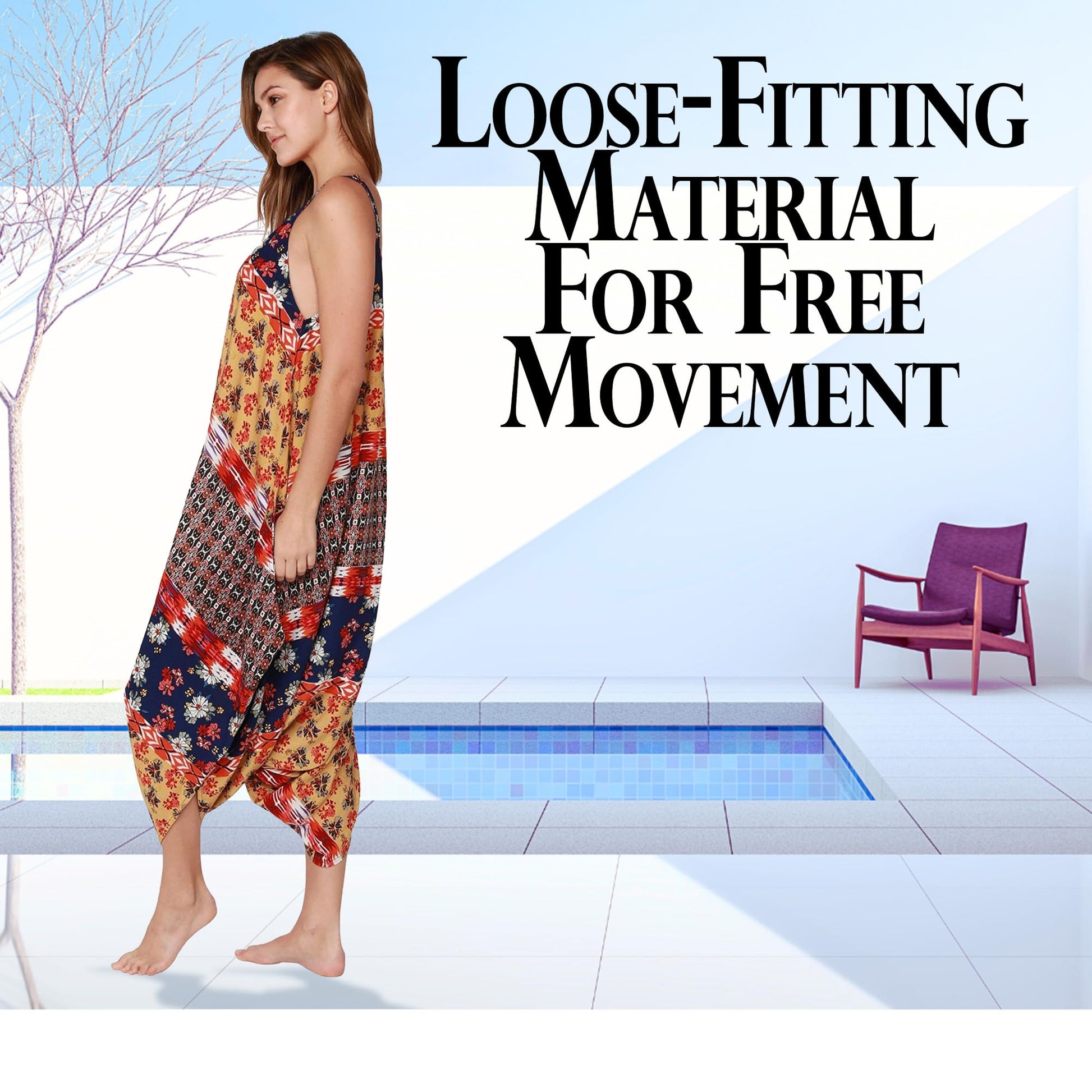 • RELAXED HAREM JUMPSUITS FOR WOMEN: Our harem jumpsuits for women offer a relaxed, loose fit with a drop-crotch design. These jumpsuits are perfect for a laid-back, stylish look that pairs effortlessly with sandals or sneakers.