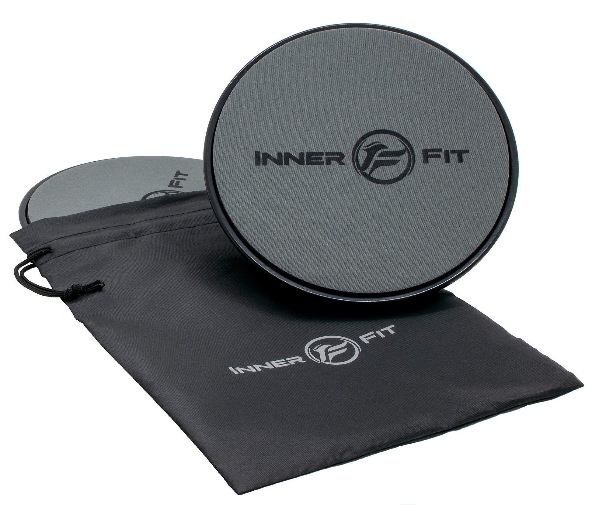 InnerFit Core Sliders for Working Out - Set of 2 Dual Sided Exercise Sliders Fitness Discs - Durable Strength Slides suitable for carpets and hardwood floors (Black & Grey)