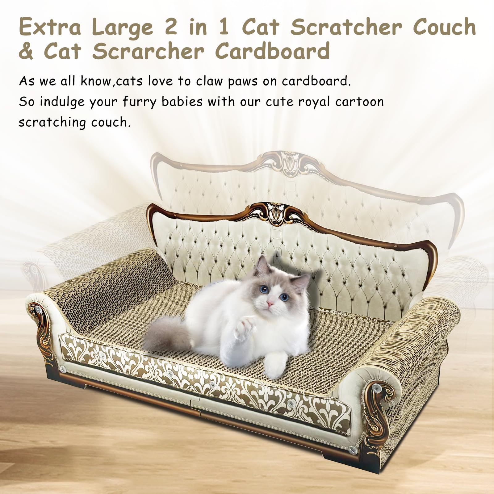 • Recycled Corrugated Cardboard for All Cats: After tested, cats can't resist to claw on the cardboard. We use non-toxic glue, no bad smell and recycled corrugated cardboard as the material so this 2 in 1 cat cardboard scratcher and cat sofa is sturdy and comfortable for cats' daily use