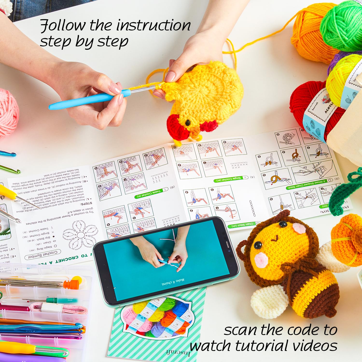 INSCRAFT Crochet Kit for Beginners Adults, 30 Acrylic Yarn Skeins 1650 Yards Yarn, 105 PCS Crochet Kit with Hooks Yarn Set,includes Canvas Tote Bag, Ideal Starter Pack for Kids Professionals