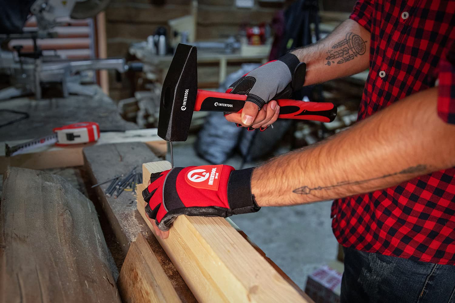 INTERTOOL 2 lbs Cross Peen Hammer, 1000g Heavy Duty Engineer Hammer, Mechanic, Blacksmith, Sheet Metal, 14” Shock Absorbing Fiberglass Handle HT08-0210