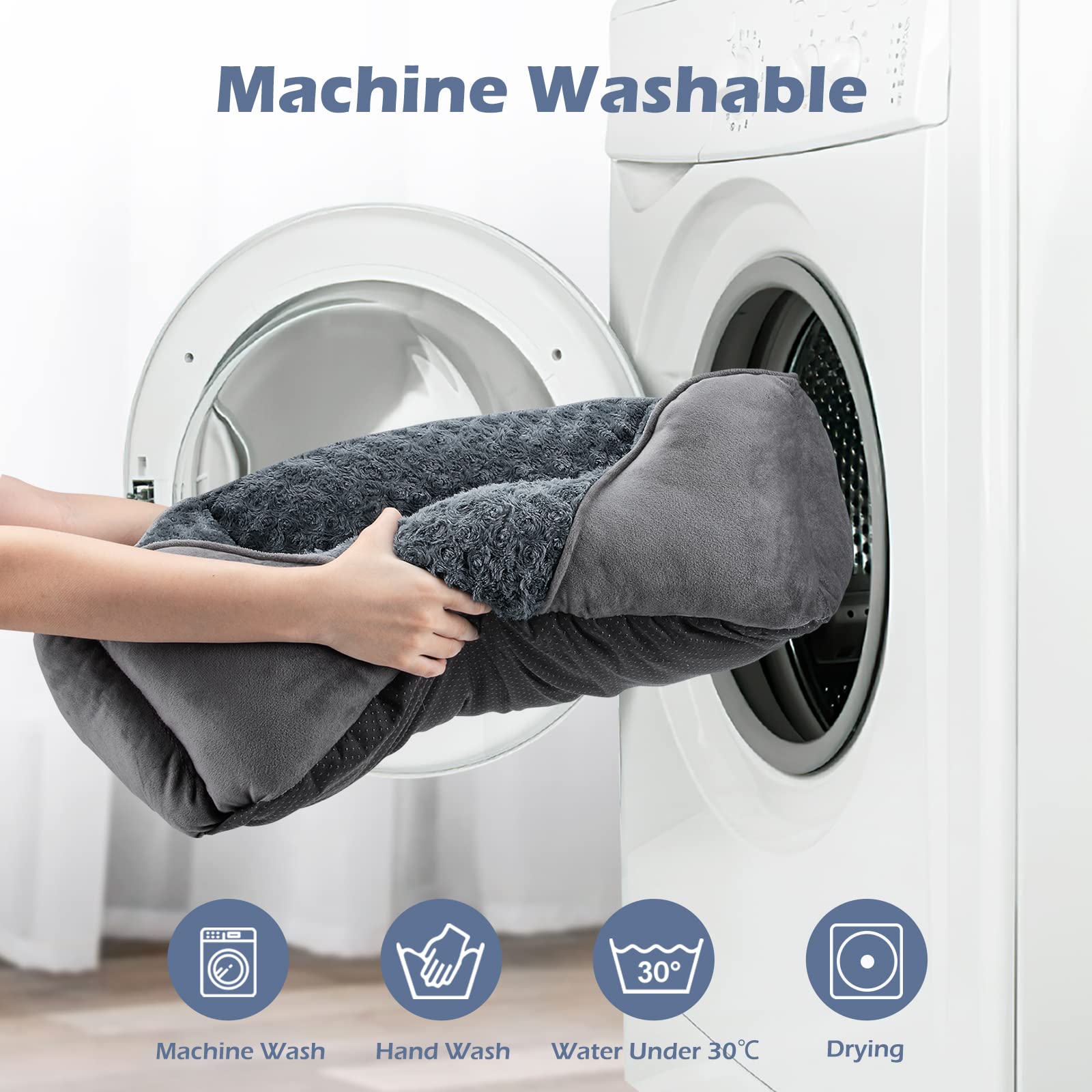 • 🐶Washable Dog Bed: Durable pet bed machine washable as a whole. Gentle cycle and thoroughly dried in dryer directly after washing and do not Air dry. Please use your hands to pat, shake the dog bed and wait for 1-2 days to wait it back to fluffy status before using.