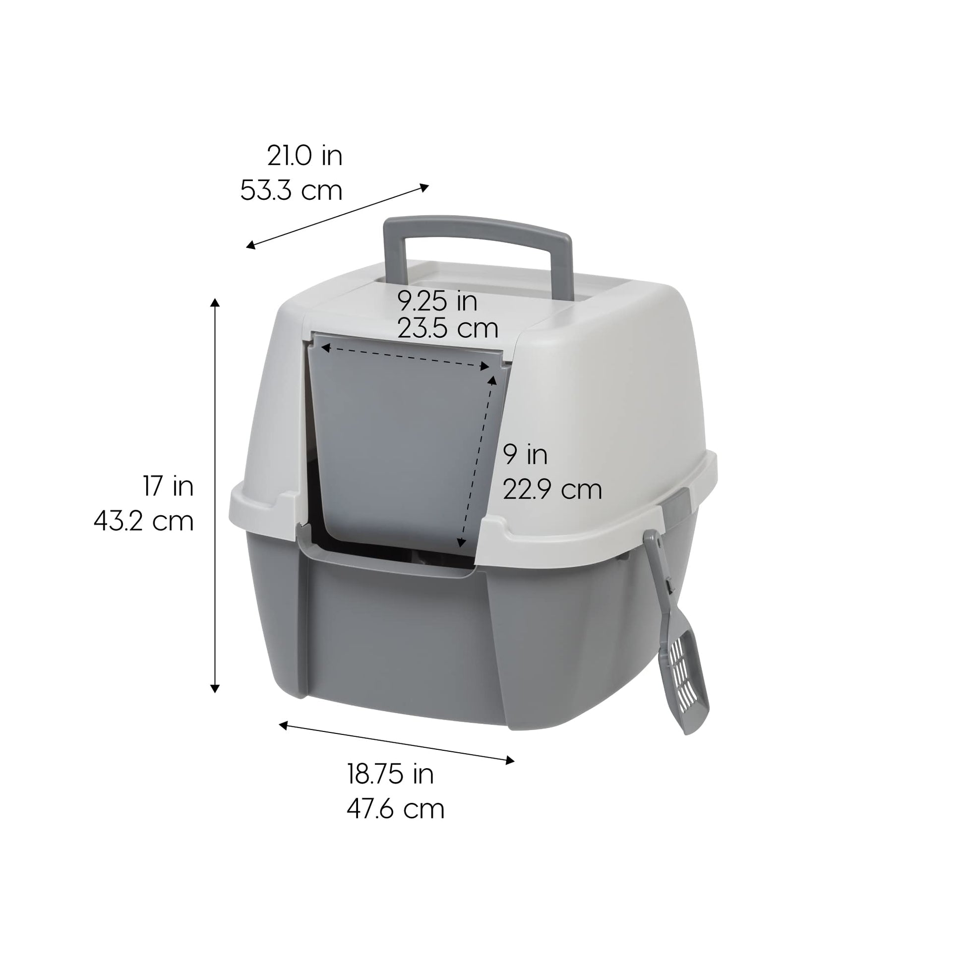 IRIS USA Cat Litter Box with Front Door Flap and Scoop, Covered Kitty Box with Handle and Buckles for Portability and Privacy, Dark Gray
