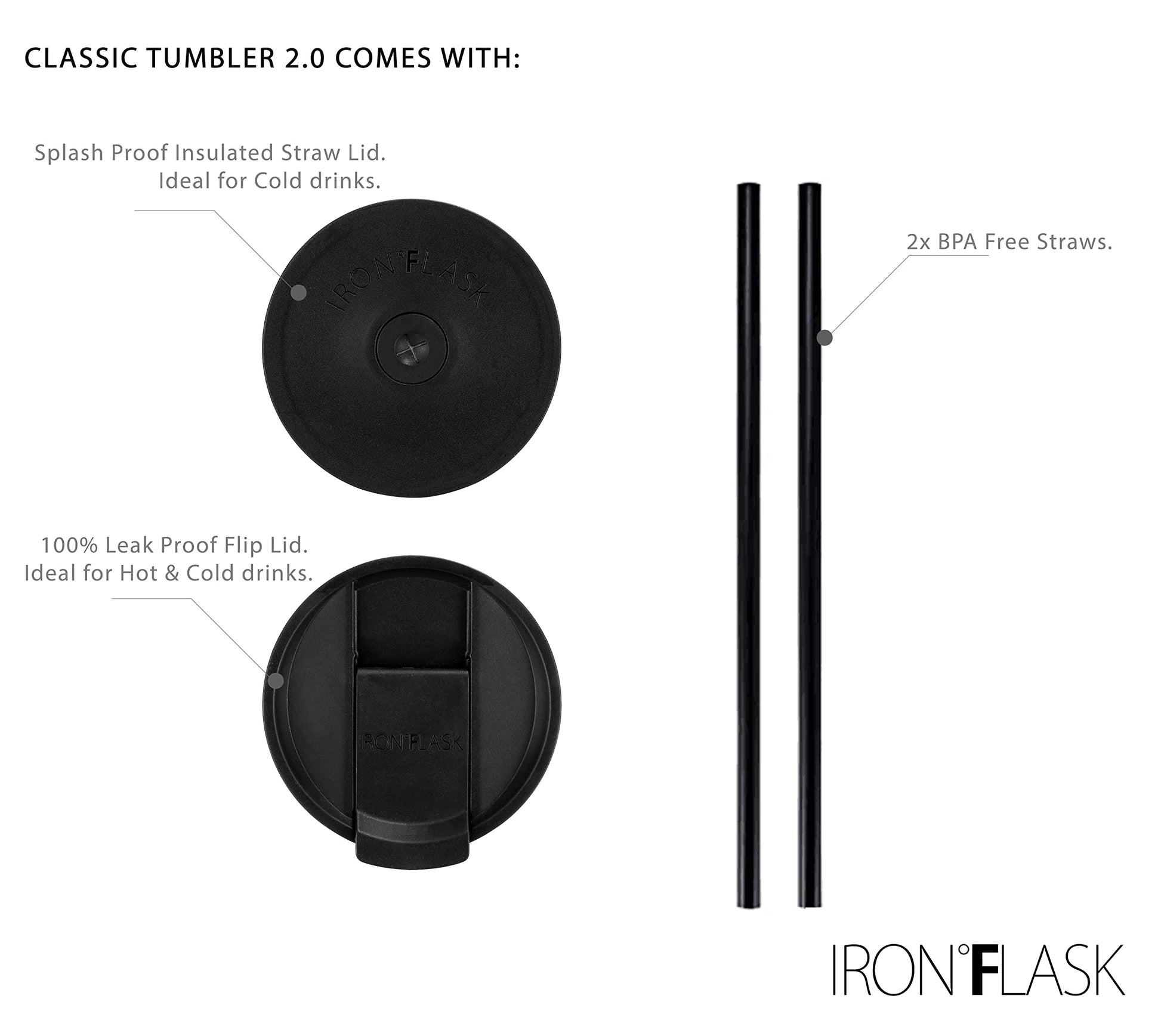 • LEAKPROOF LIDS: Classic 2.0 tumblers come with TWO different insulated lids. A splash-proof straw lid with two straws, and a leak-proof flip lid. So you can enjoy every sip of your favorite drink without bathing in it.